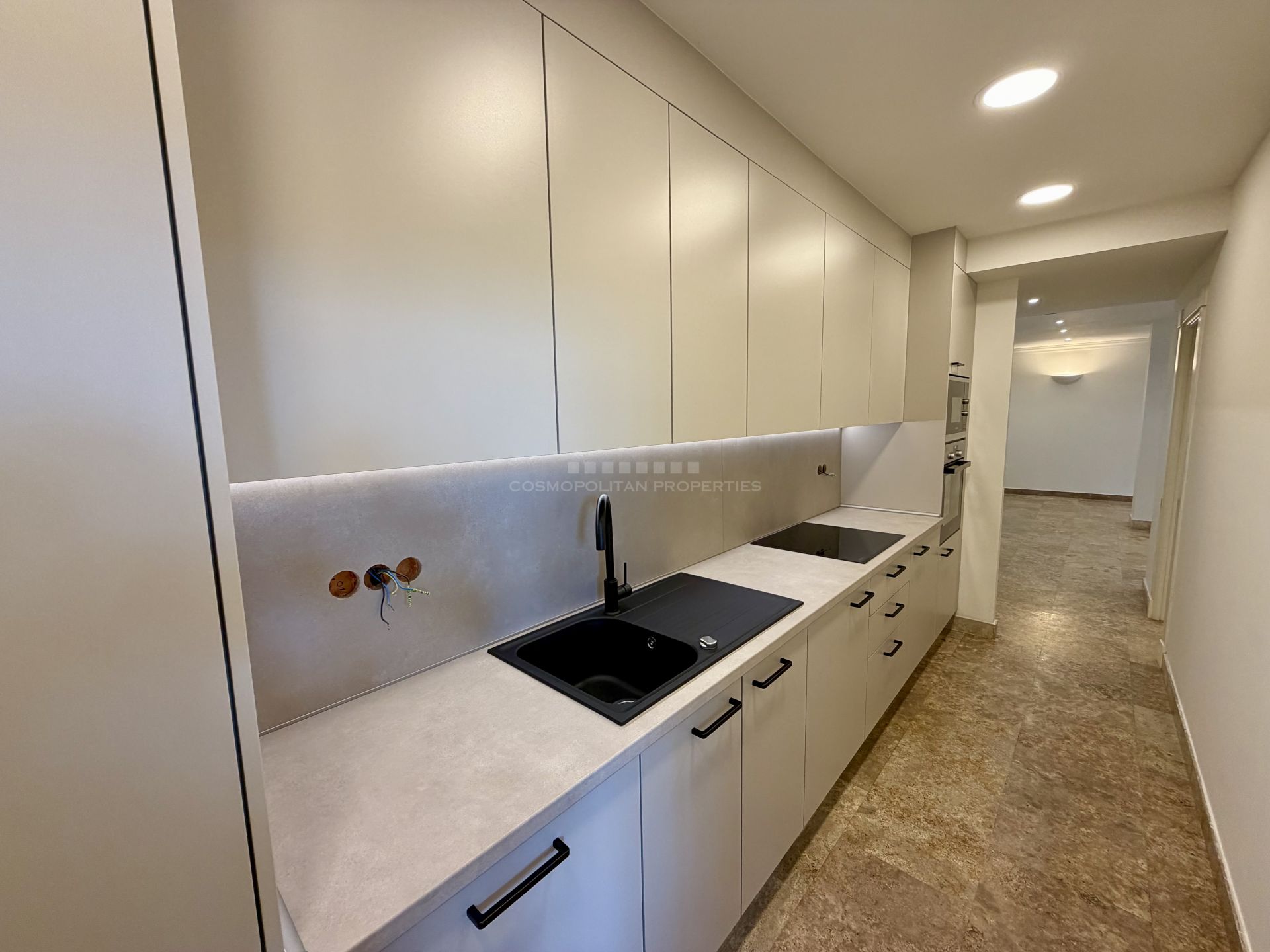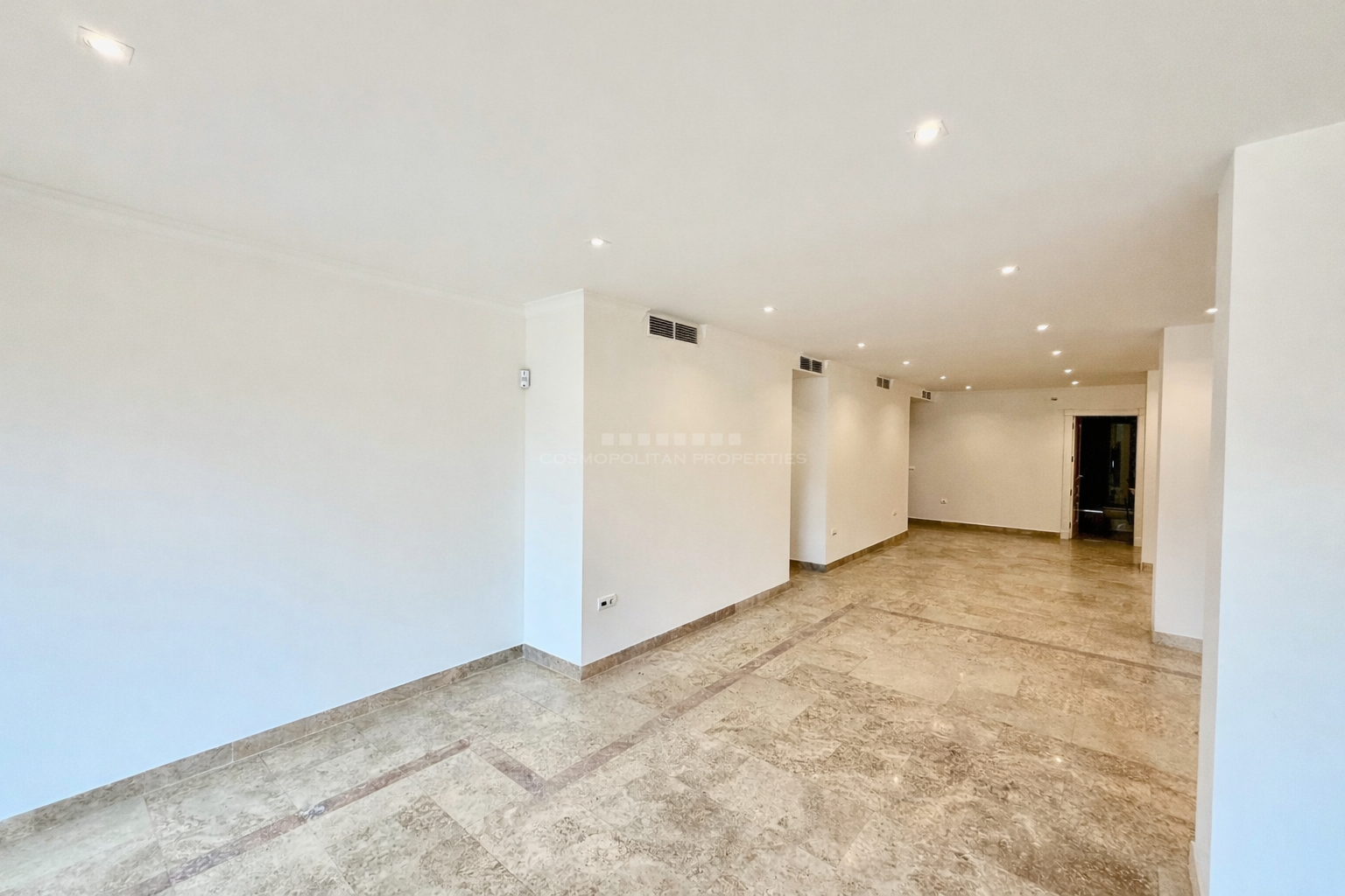 El apartamento ofrece una amplísima y luminosa zona de estar con salón y comedor de planta abierta, de 75 m2 aprox., junto a una cocina de estilo clásico totalmente equipada. Dispone de tres dormitorios, dos de ellos con baño en suite, y un baño adicional, todos con excelentes calidades y un diseño elegante. El baño del dormitorio principal cuenta, además, con ducha y bañera separadas.