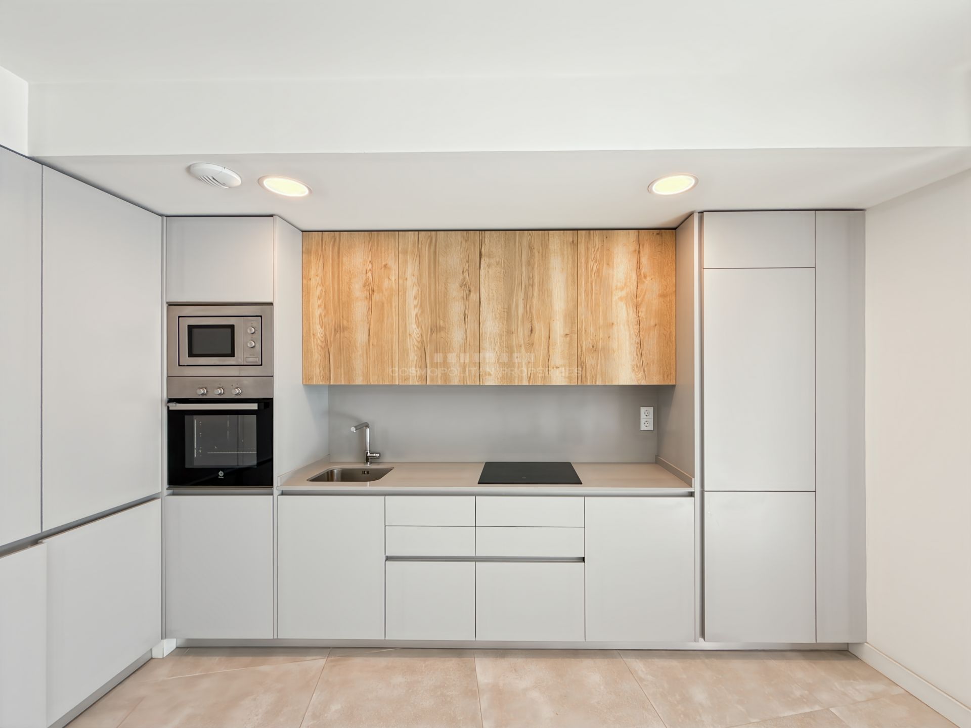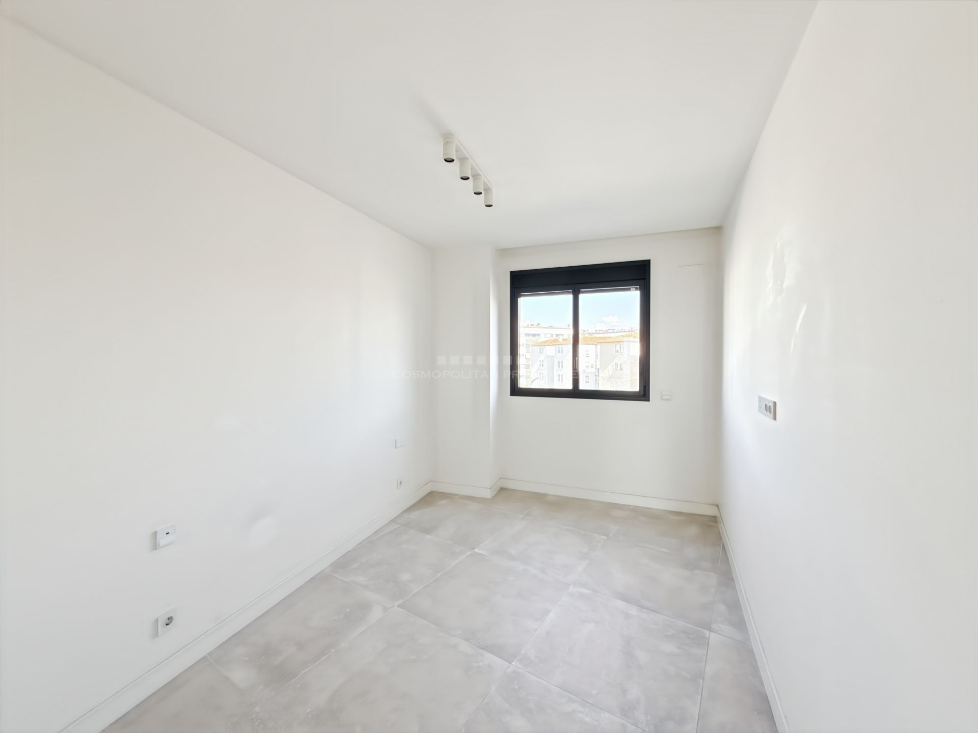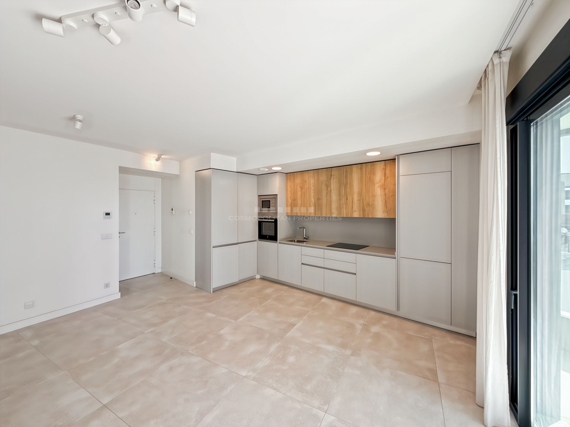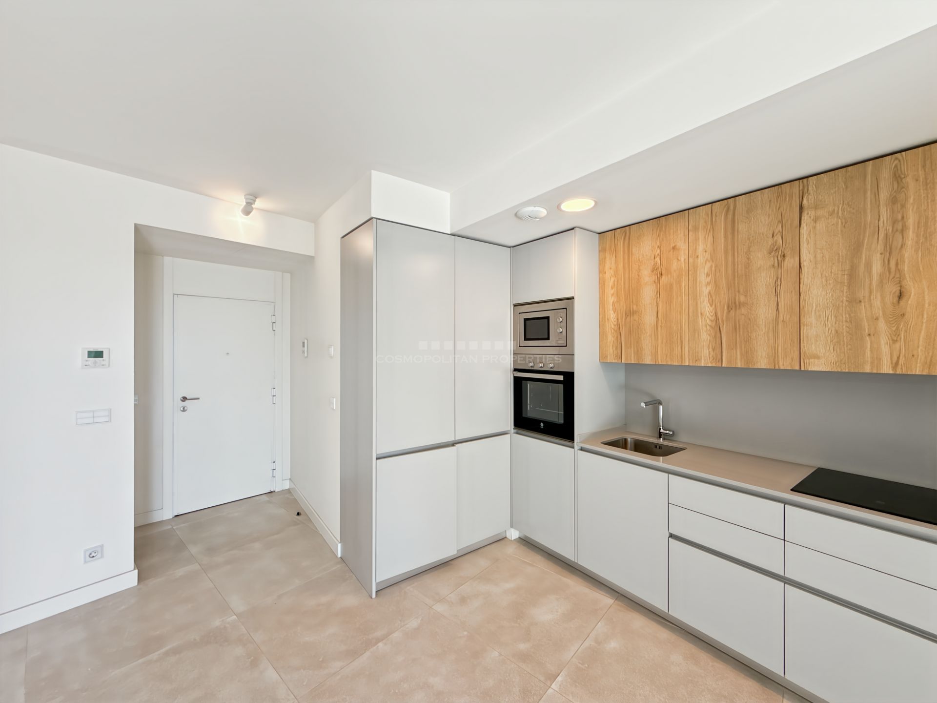 La vivienda, orientada al sur, destaca por su luminosidad y amplitud, reforzada por sus techos de 2,7 metros que dan una sensación de espacio y elegancia poco habitual. El salón, amplio y acogedor, se abre a una terraza cubierta ideal para desayunar con la brisa marina. Cuenta con un dormitorio con armario empotrado, baño moderno con plato de ducha y una cocina amueblada y equipada con electrodomésticos integrados de alta gama. Se alquila sin muebles, lista para que la personalices a tu gusto. Para tu comodidad, dispone de sistema de aire por conductos frío/calor en todas las estancias y una plaza de parking incluida en el precio.
