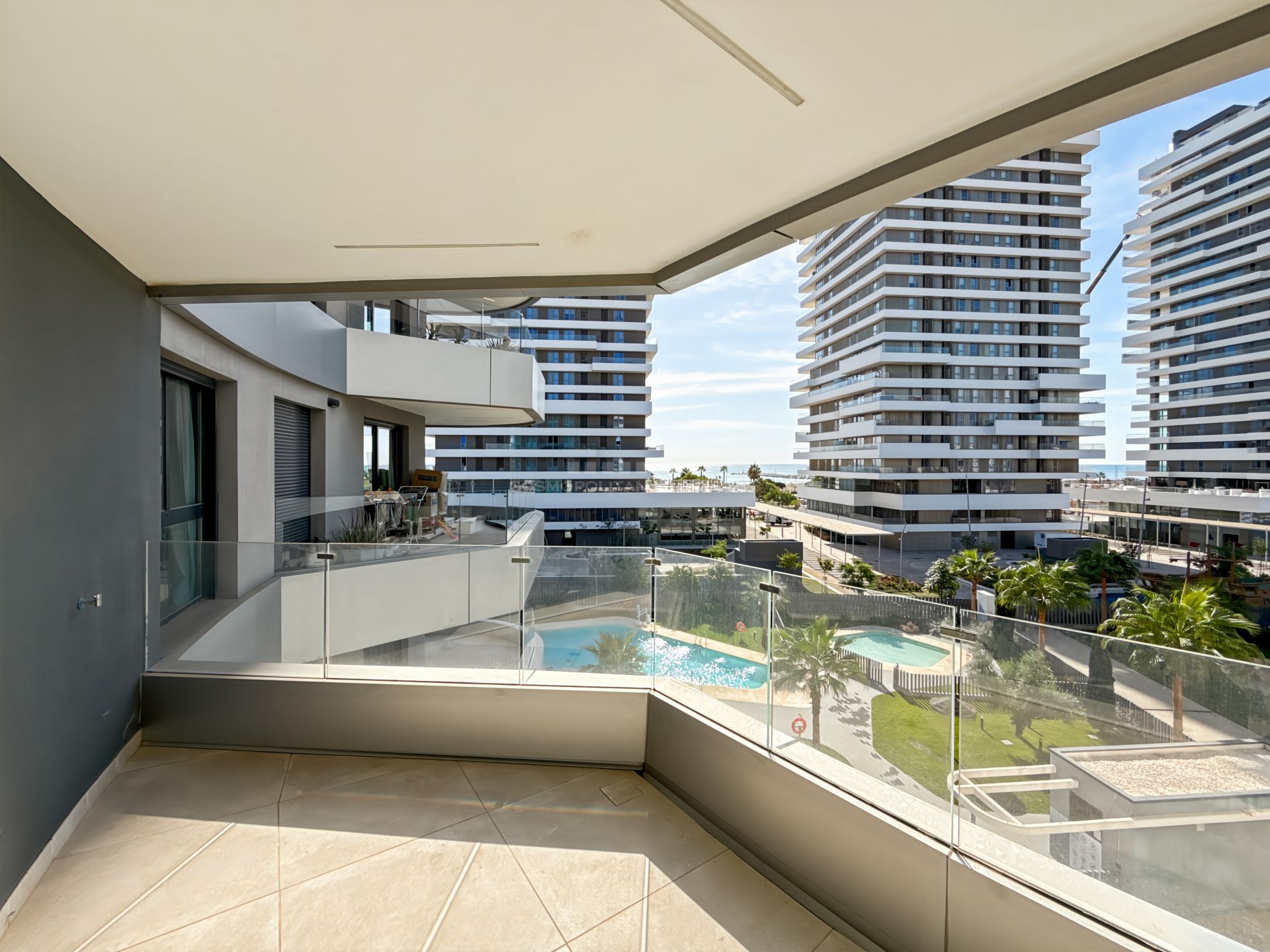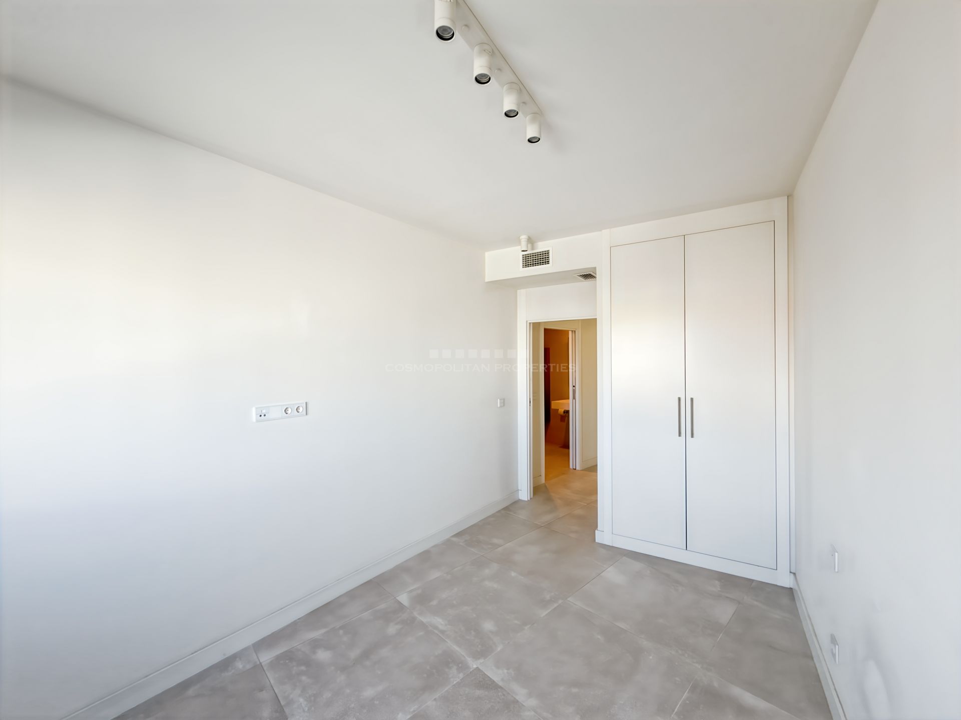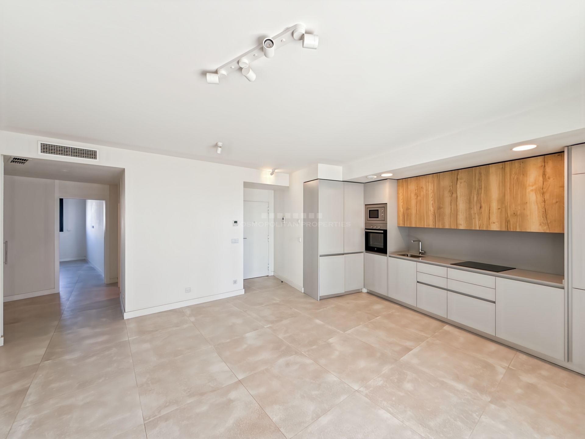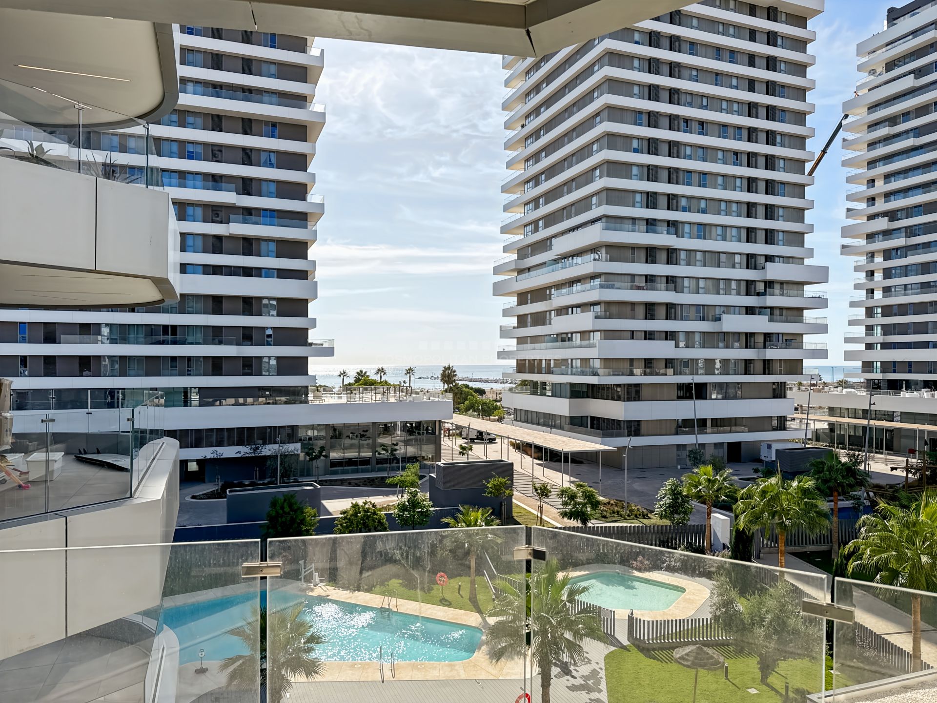 La vivienda, orientada al sur, destaca por su luminosidad y amplitud, reforzada por sus techos de 2,7 metros que dan una sensación de espacio y elegancia poco habitual. El salón, amplio y acogedor, se abre a una terraza cubierta ideal para desayunar con la brisa marina. Cuenta con un dormitorio con armario empotrado, baño moderno con plato de ducha y una cocina amueblada y equipada con electrodomésticos integrados de alta gama. Se alquila sin muebles, lista para que la personalices a tu gusto. Para tu comodidad, dispone de sistema de aire por conductos frío/calor en todas las estancias y una plaza de parking incluida en el precio.