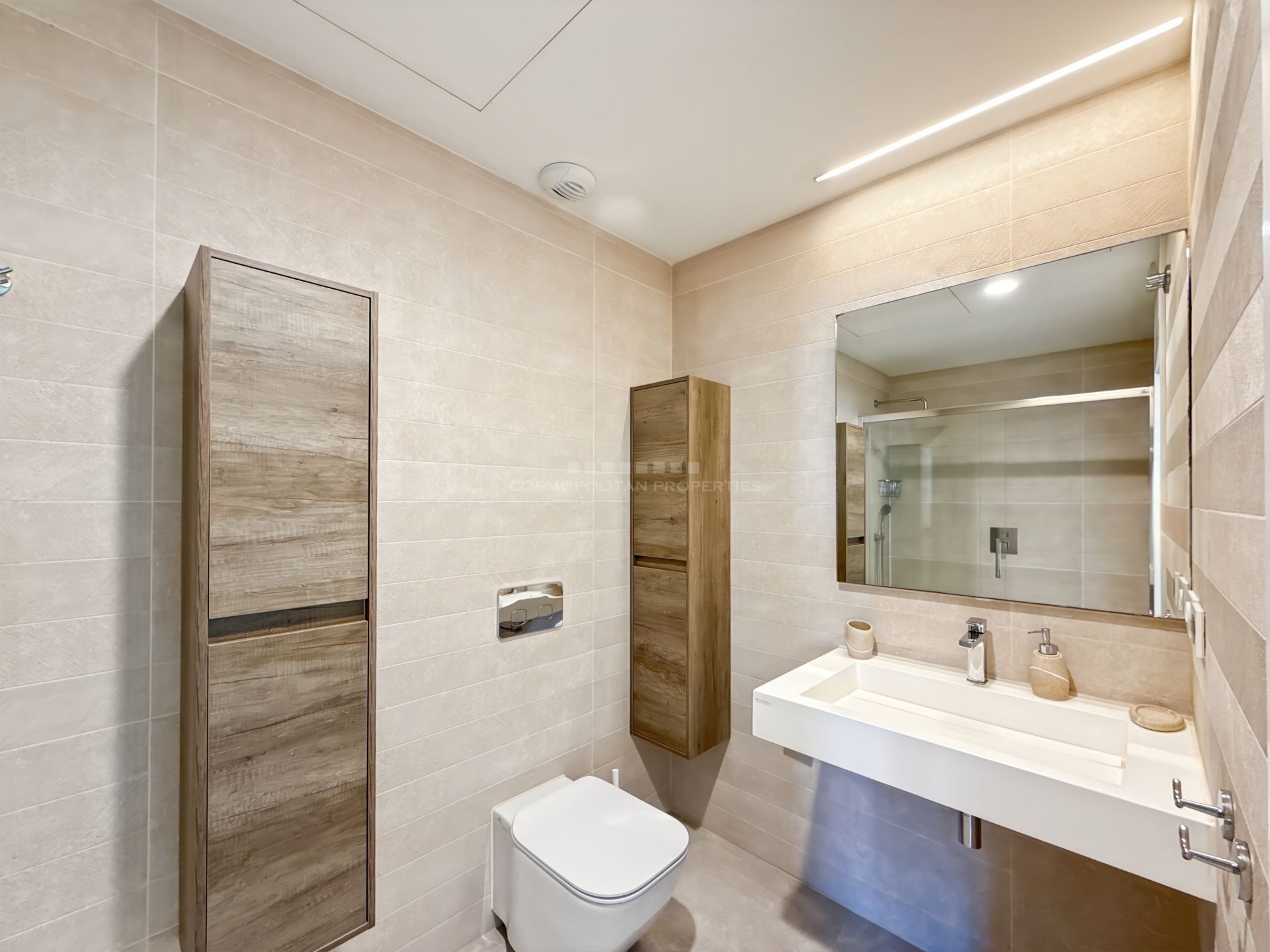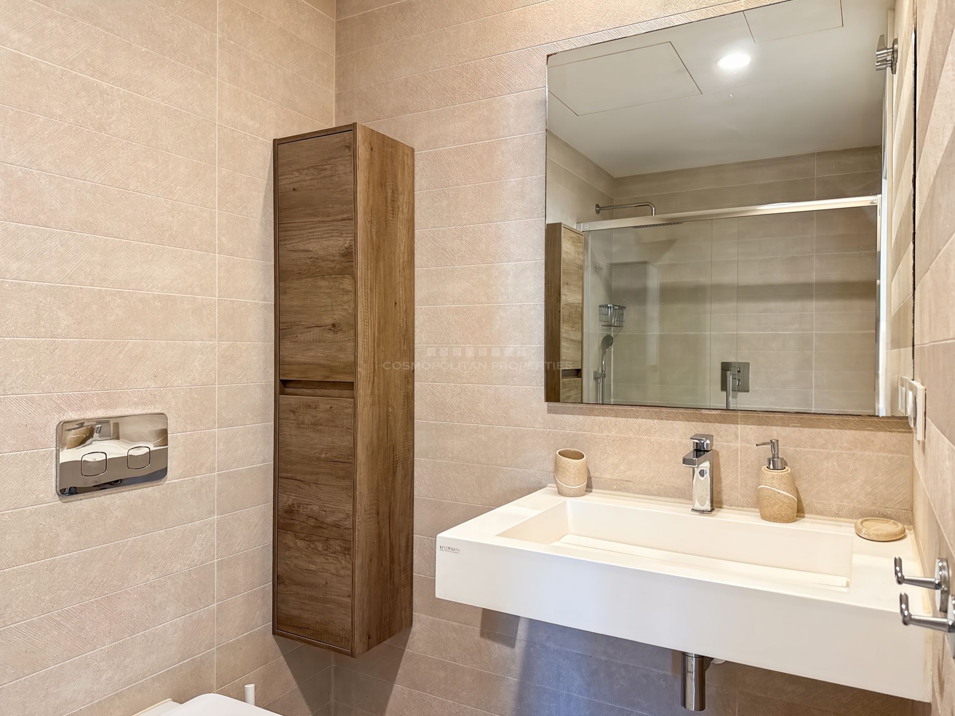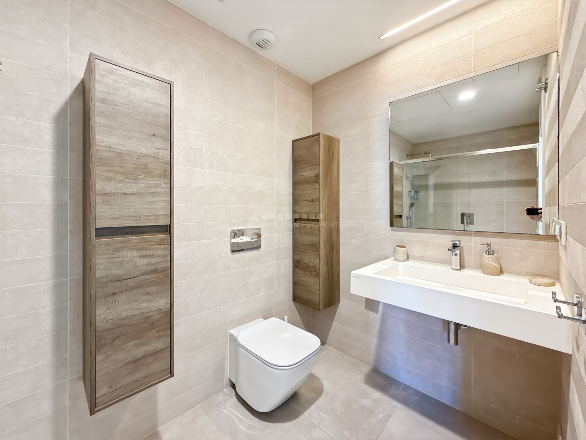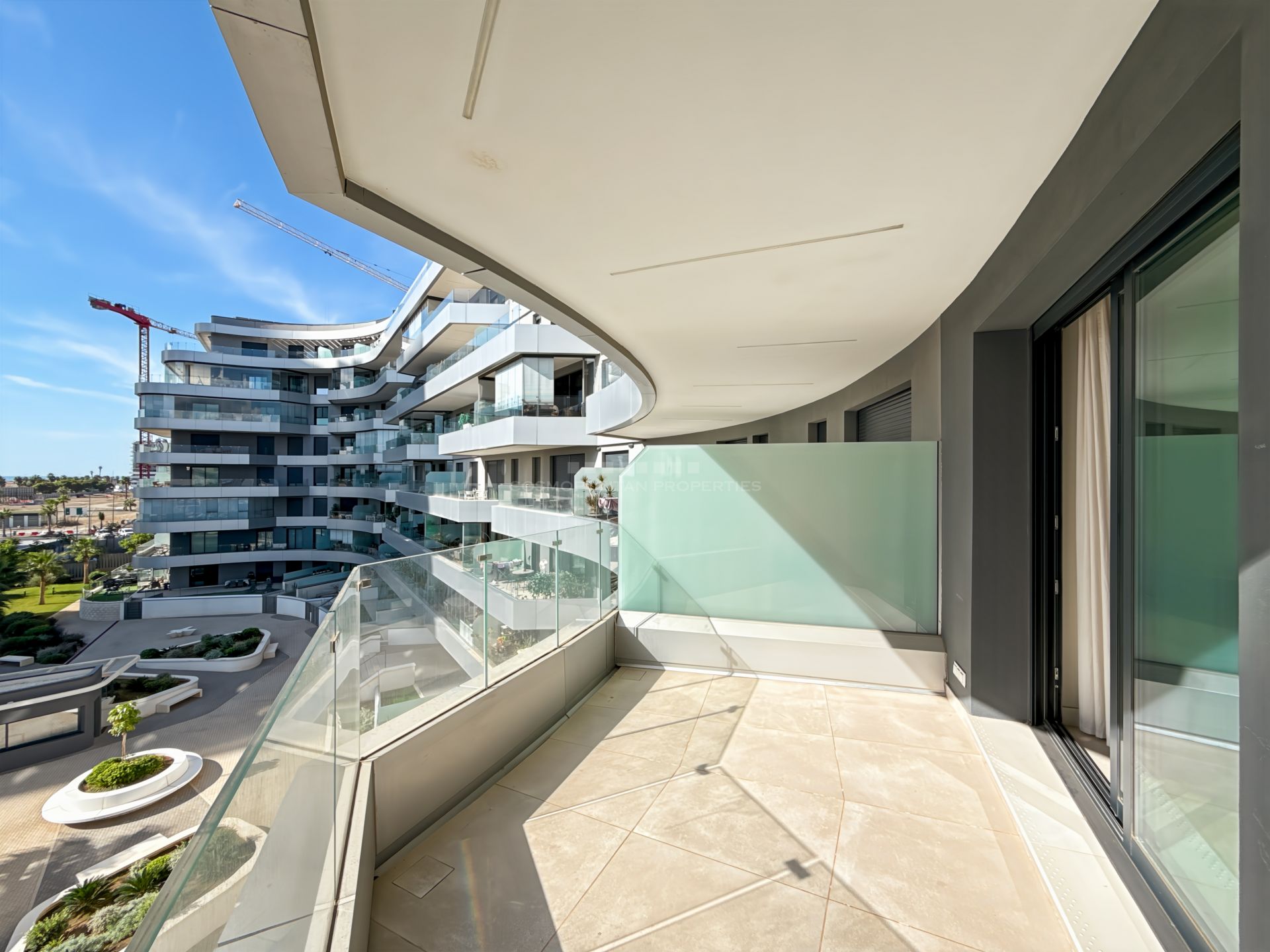 La vivienda, orientada al sur, destaca por su luminosidad y amplitud, reforzada por sus techos de 2,7 metros que dan una sensación de espacio y elegancia poco habitual. El salón, amplio y acogedor, se abre a una terraza cubierta ideal para desayunar con la brisa marina. Cuenta con un dormitorio con armario empotrado, baño moderno con plato de ducha y una cocina amueblada y equipada con electrodomésticos integrados de alta gama. Se alquila sin muebles, lista para que la personalices a tu gusto. Para tu comodidad, dispone de sistema de aire por conductos frío/calor en todas las estancias y una plaza de parking incluida en el precio.