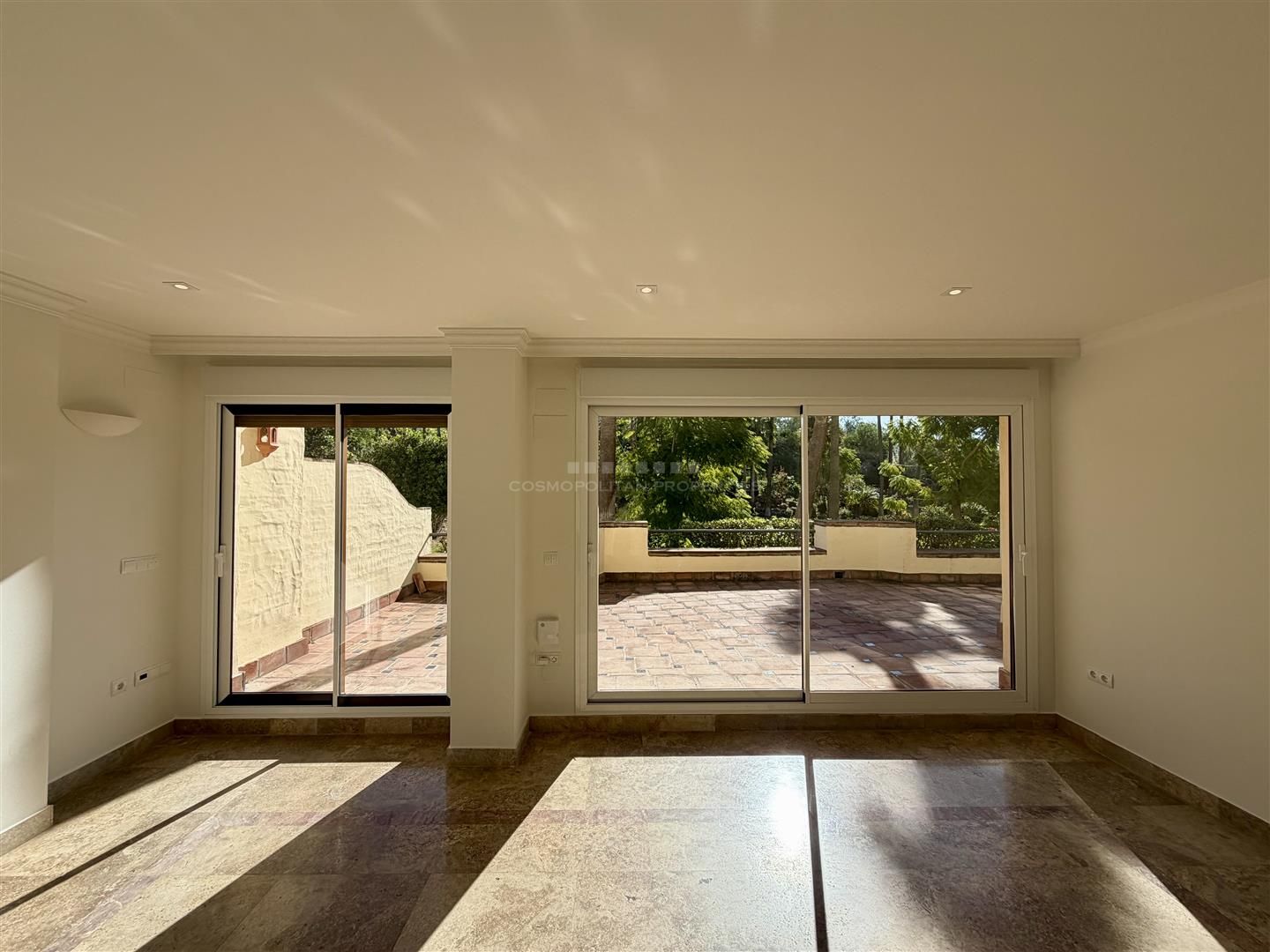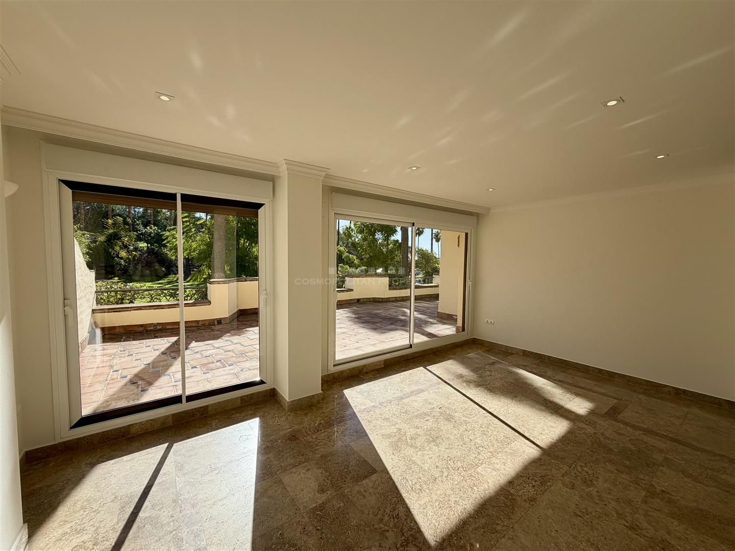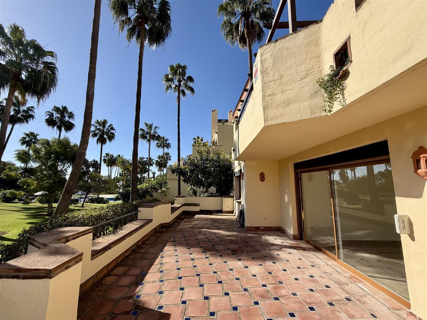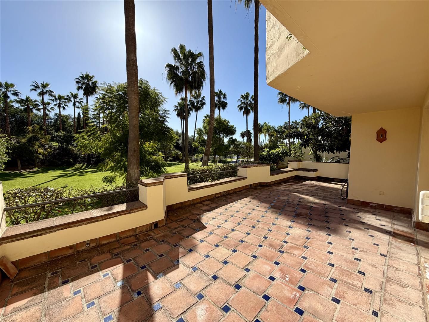 Appartement rez de chaussée à louer à Las Cascadas, Marbella Golden Mile avec 3 chambres, 3 salles de bains, 2 en-suite bathrooms et ont piscine (communautaire), garage (privé) et jardin (communautaire). Dimensions: 279m² construit et 75m² terrasse.
