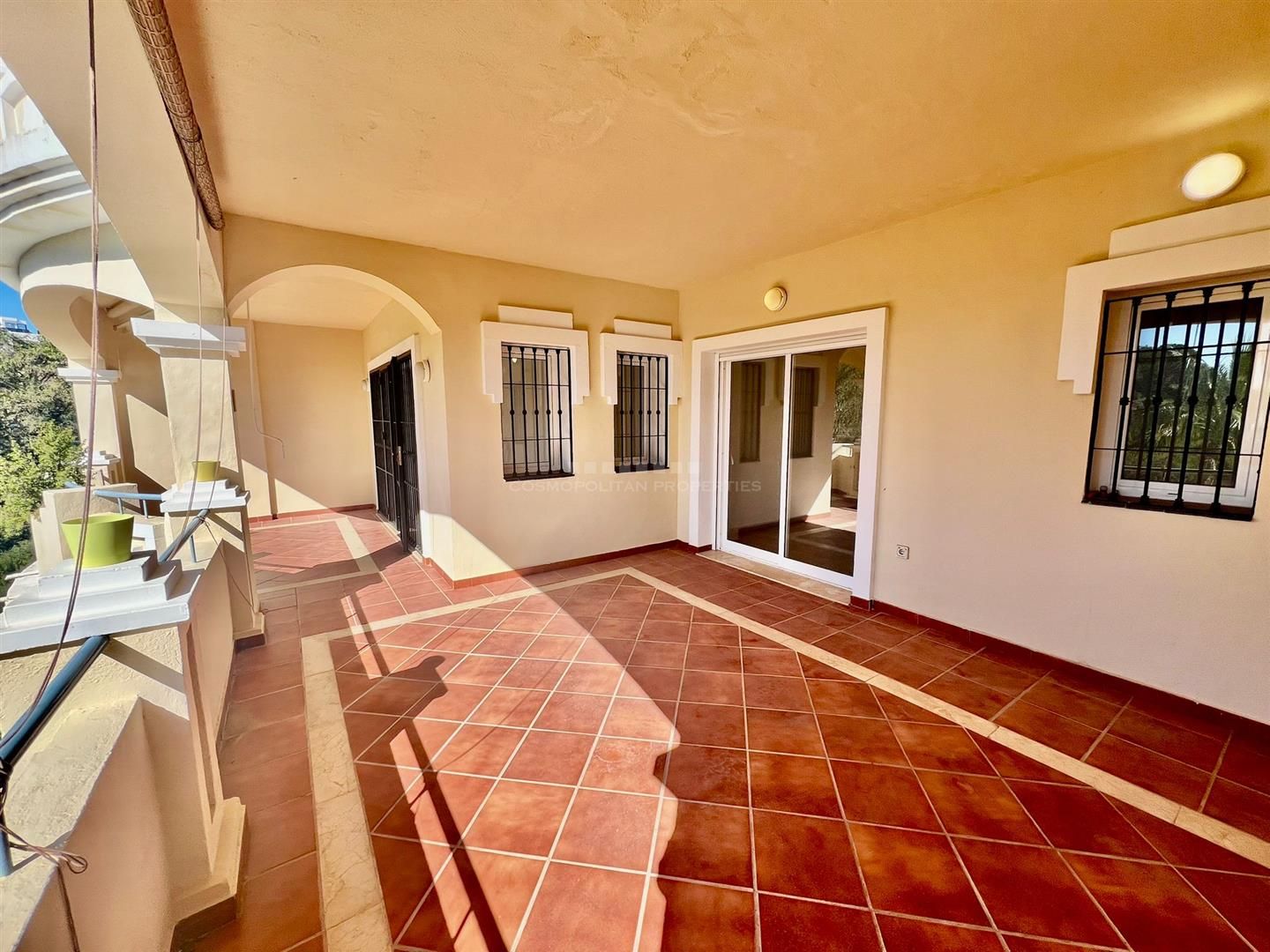 REDUCED PRICE! Spacious apartment located in Elviria within a gated and secure urbanization, with a communal pool and beautiful gardens. It is distributed in 2 bedrooms, 2 bathrooms, a spacious living room, a large terrace, and a toilet at the entrance. The house has 1 garage space for a large car and 1 storage room. It has underfloor heating in bathrooms, living room with fireplace with access to a large covered terrace. It is located in a gated community with a garage and storage room. South-west orientation, it is very bright.