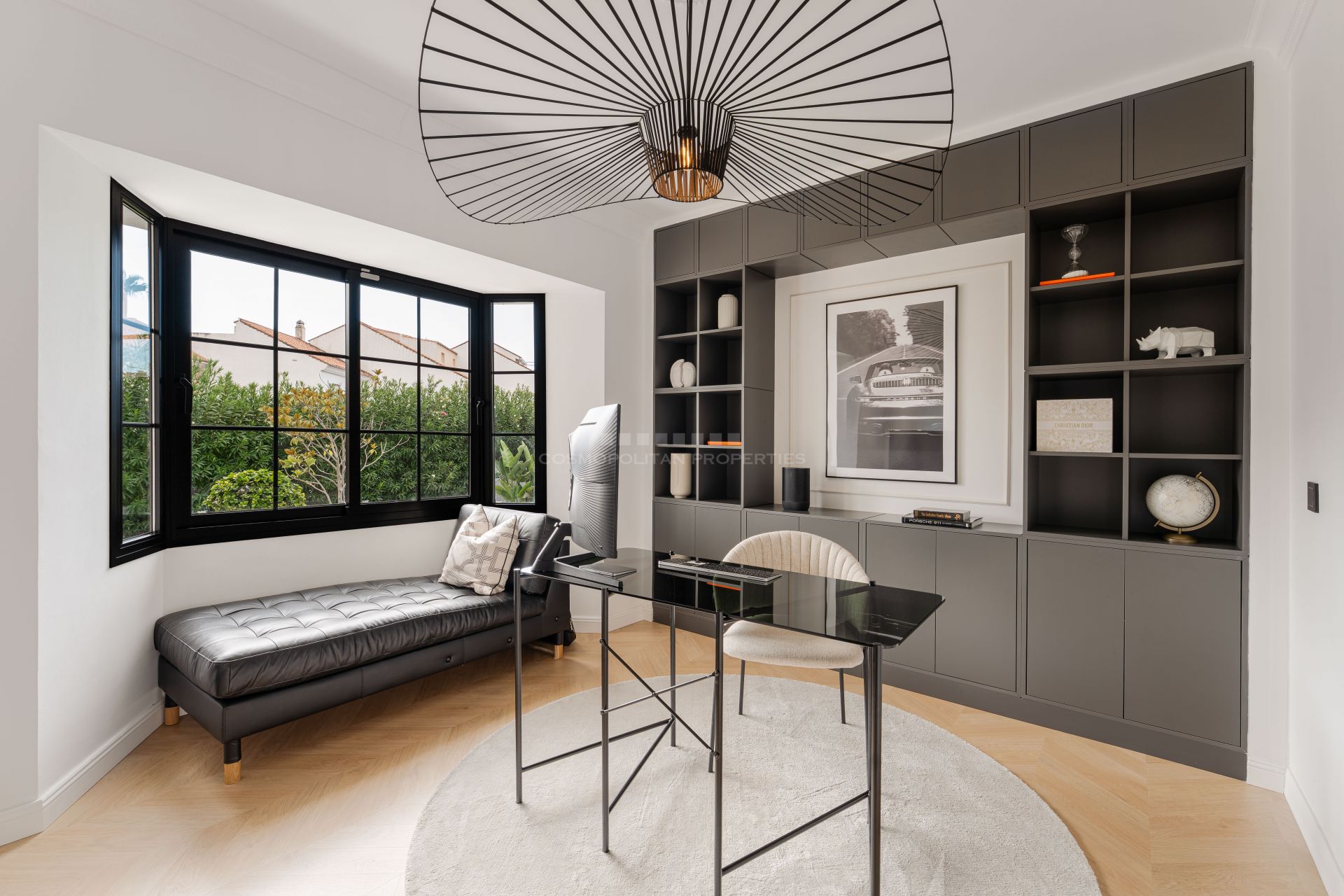 This elegant contemporary villa for sale in the residential neighbourhood of Monte Biarritz offers a rare opportunity to own a fully modernised home that blends Scandinavian elegance with intelligent home living. Situated just a five-minute drive from the beach, Villa Montebello features six spacious bedrooms, four bathrooms, each designed with a focus on comfort and sophistication. The villa is distributed across three levels, with a total built area 448m2, including expansive interior spaces and a generous garden that captures the best of Mediterranean outdoor living.