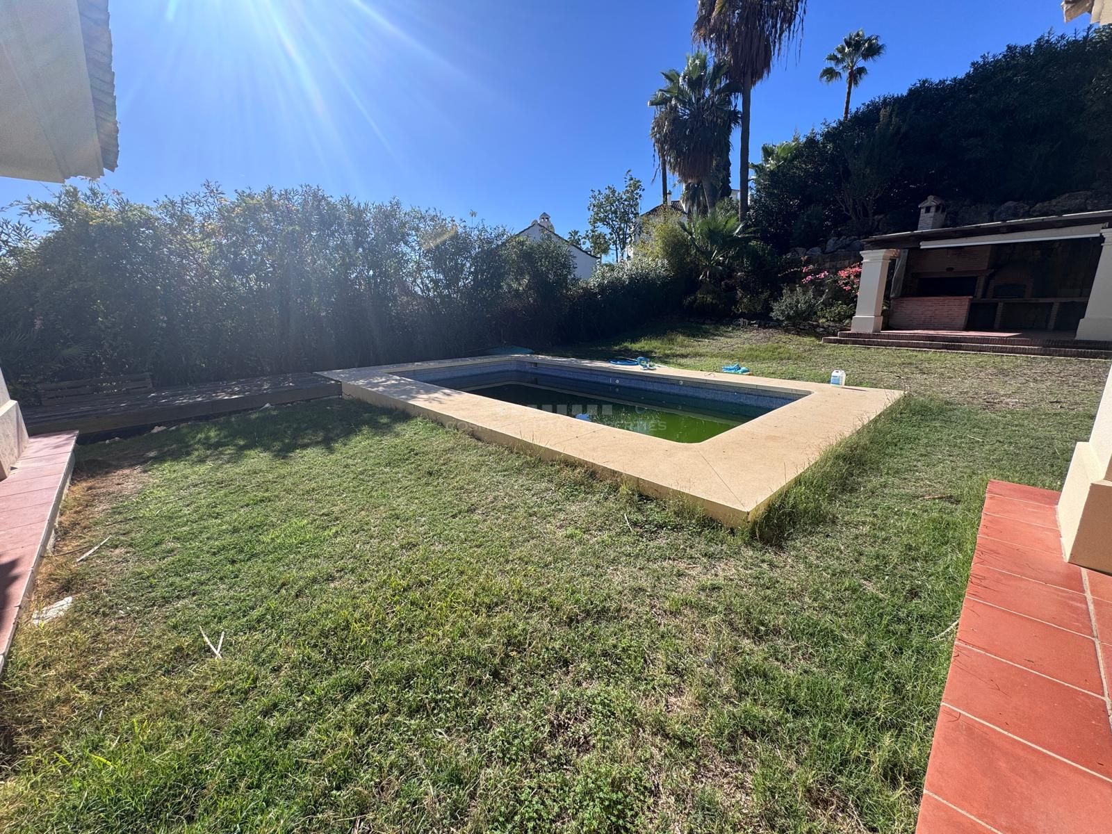Entering the villa, we find a hall with a double-height ceiling that gives a feeling of spaciousness, to the right, a modern, highly functional new kitchen, fully furnished and equipped, and to the left, a large living room divided into three areas with fantastic views of La Concha mountain. A guest toilet gives access to two large bedrooms with en-suite bathrooms, both with access to the terrace, very bright and private; marble bathrooms and in very good condition.