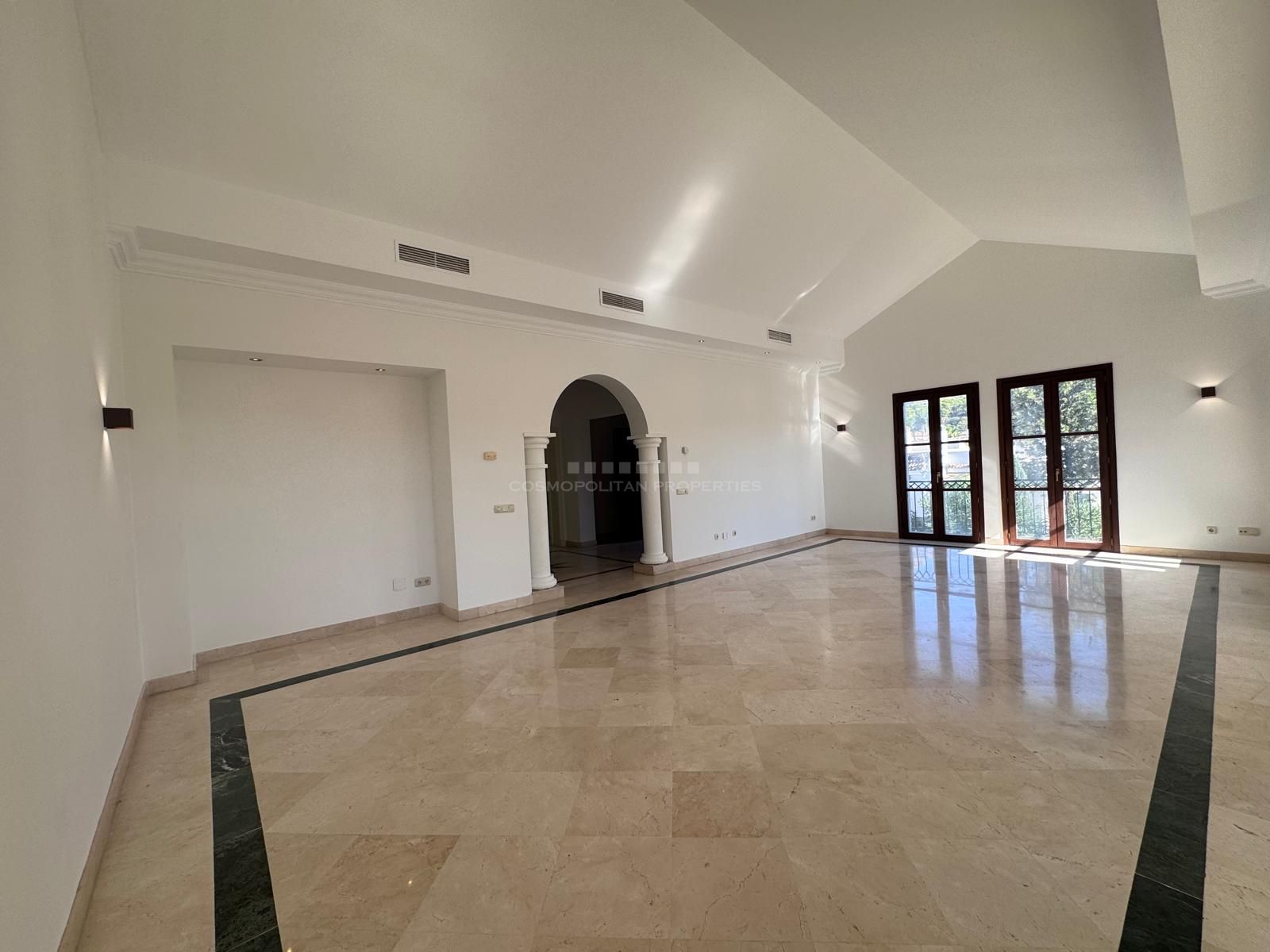 We present this impressive classic style villa, located in the heart of the prestigious Golf Valley in Nueva Andalucía, Marbella. This exceptional property has a privileged location, with easy access to international schools, services and the vibrant Puerto Banús just a short drive away.