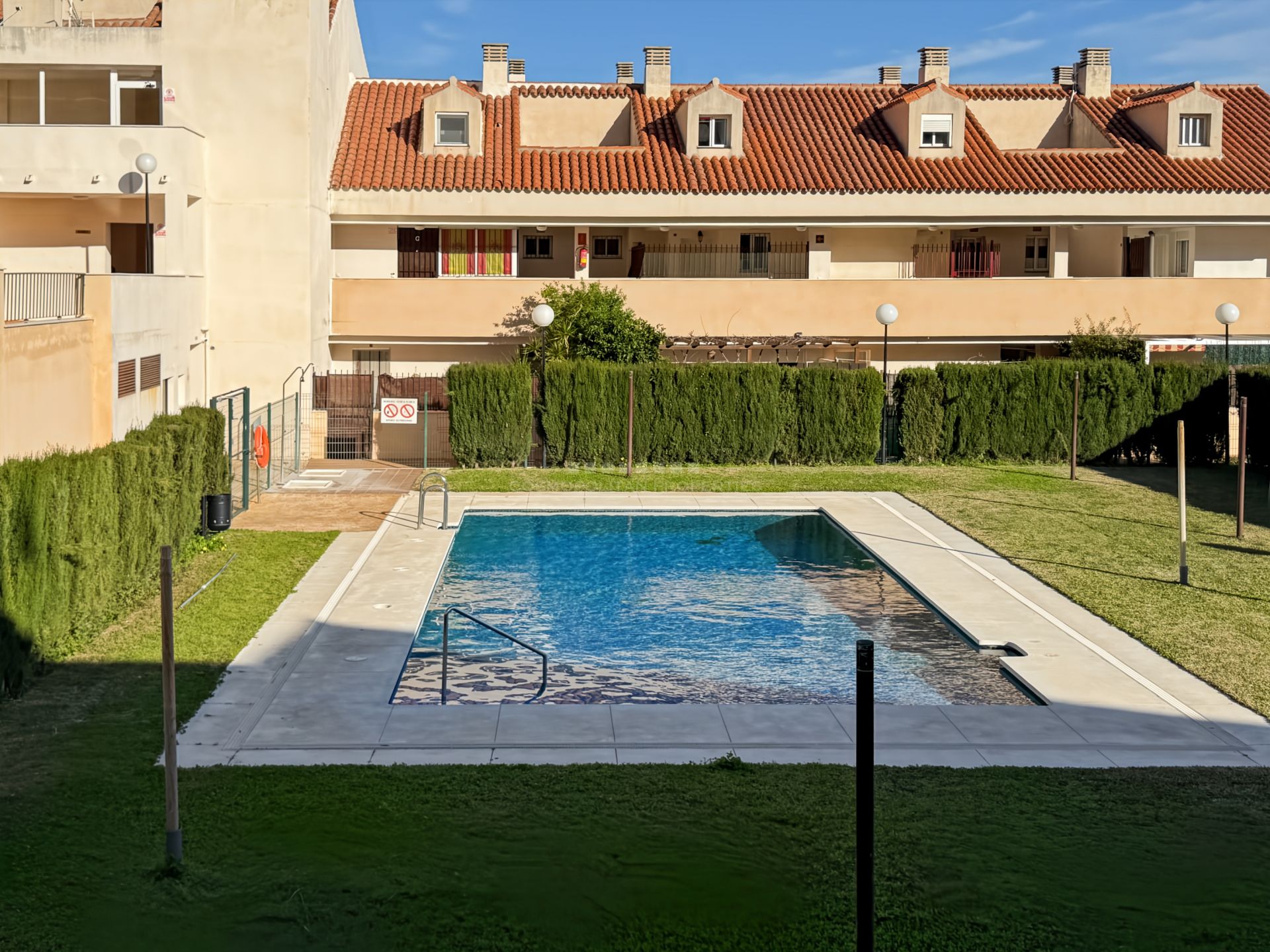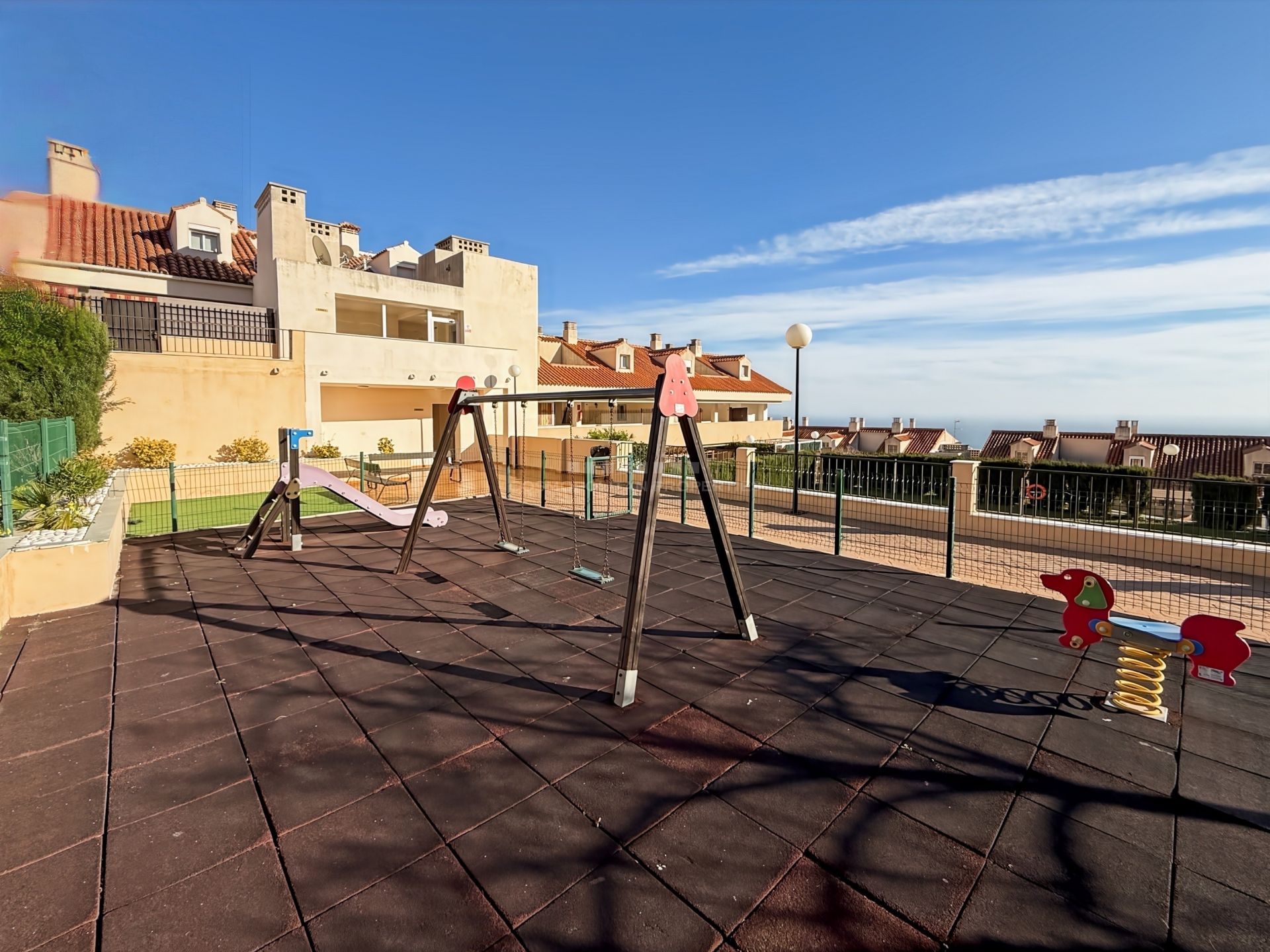 Ubicado en un recinto cerrado con amplias zonas comunes, 2 piscinas y parque infantil, ideal para familias o como residencia habitual en un entorno seguro y relajado.