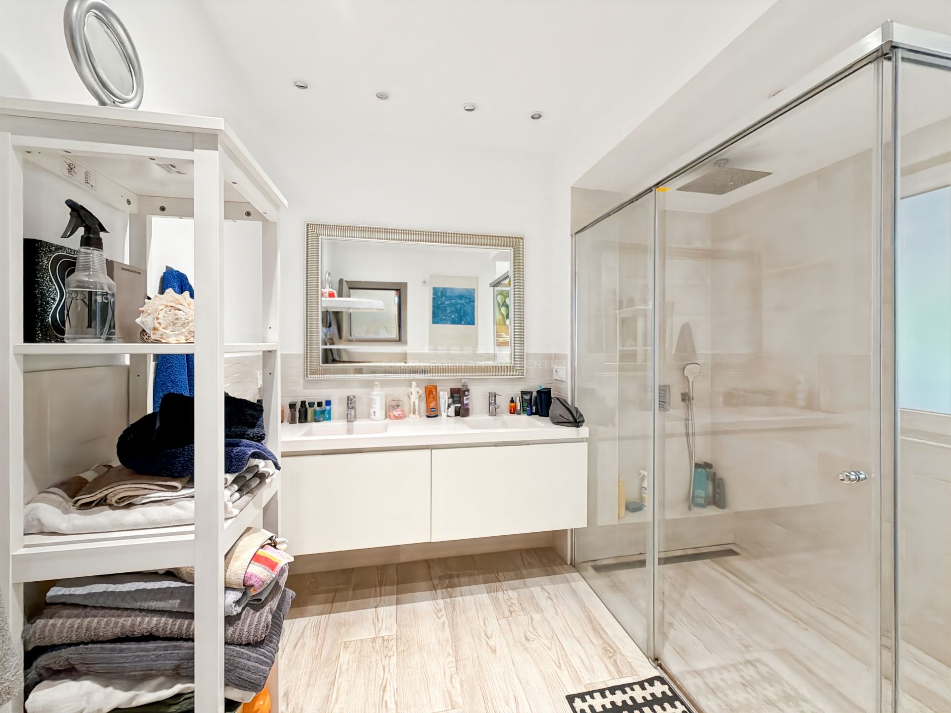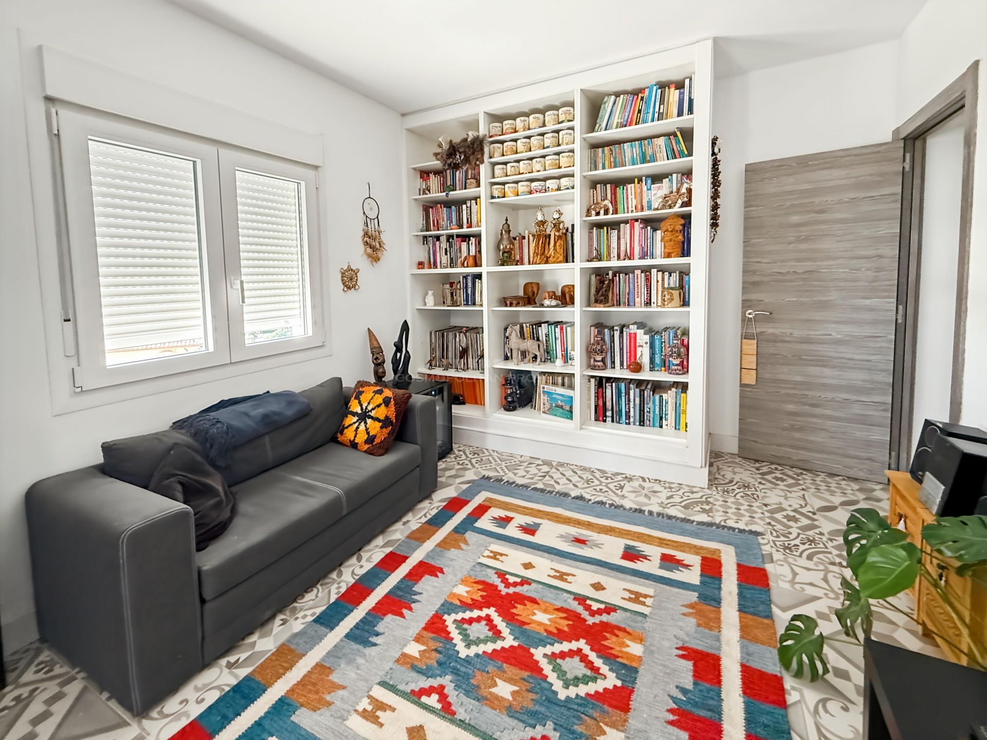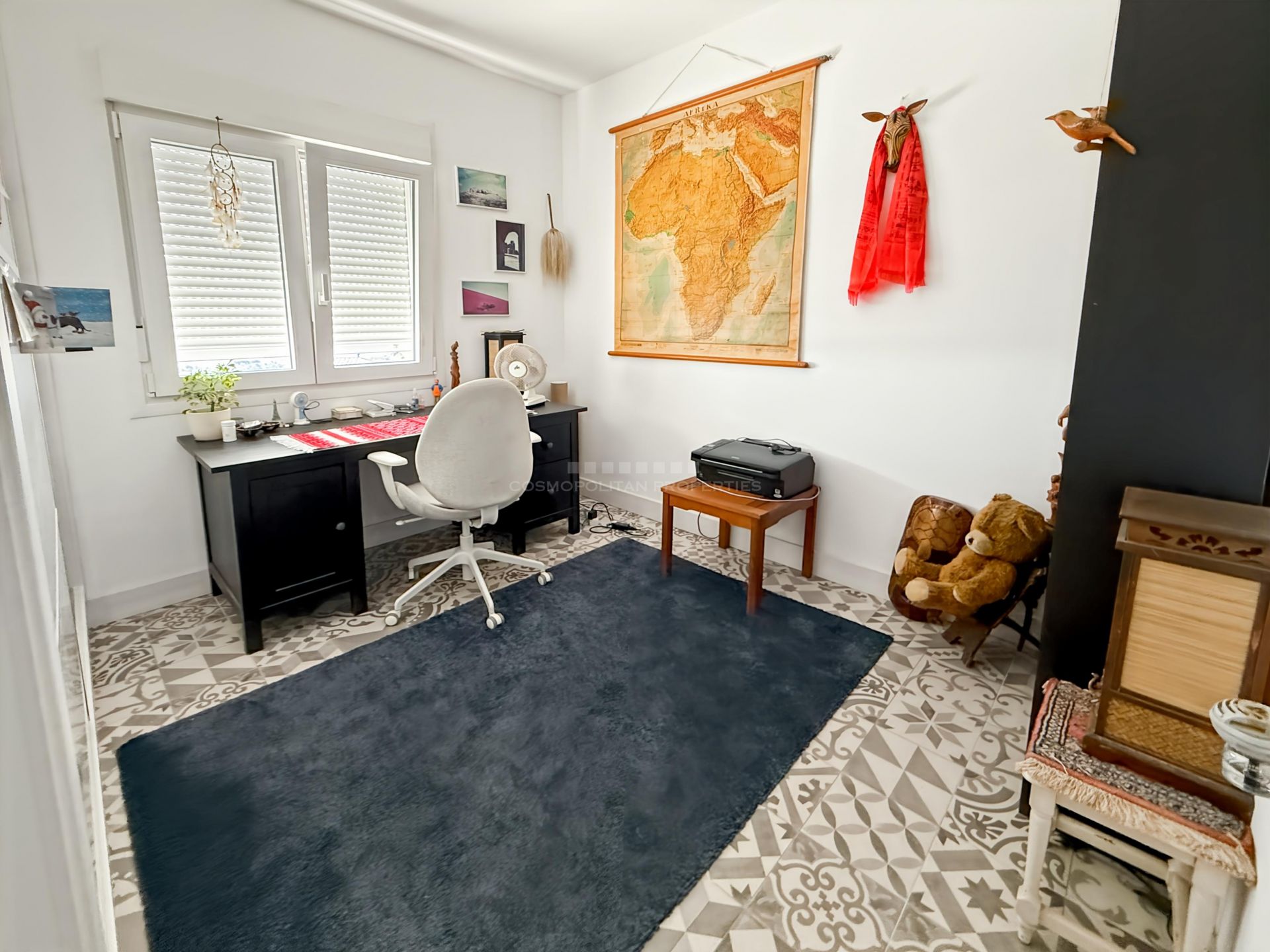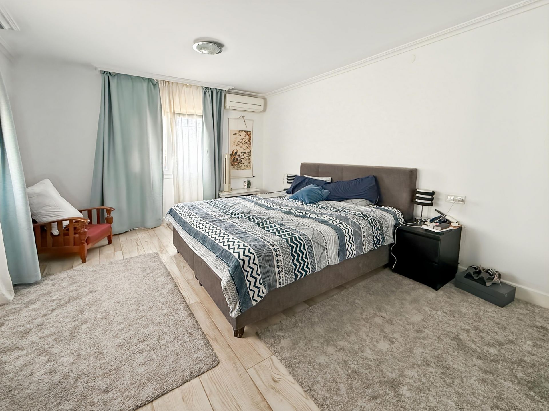 El dormitorio principal es muy espacioso y cuenta con zona de vestidor y baño en suite. Además, hay otro dormitorio actualmente utilizado como despacho, un segundo baño completo, y un tercer dormitorio de gran tamaño con escalera que conduce a una azotea privada, ideal para tomar el sol o disfrutar de las vistas.