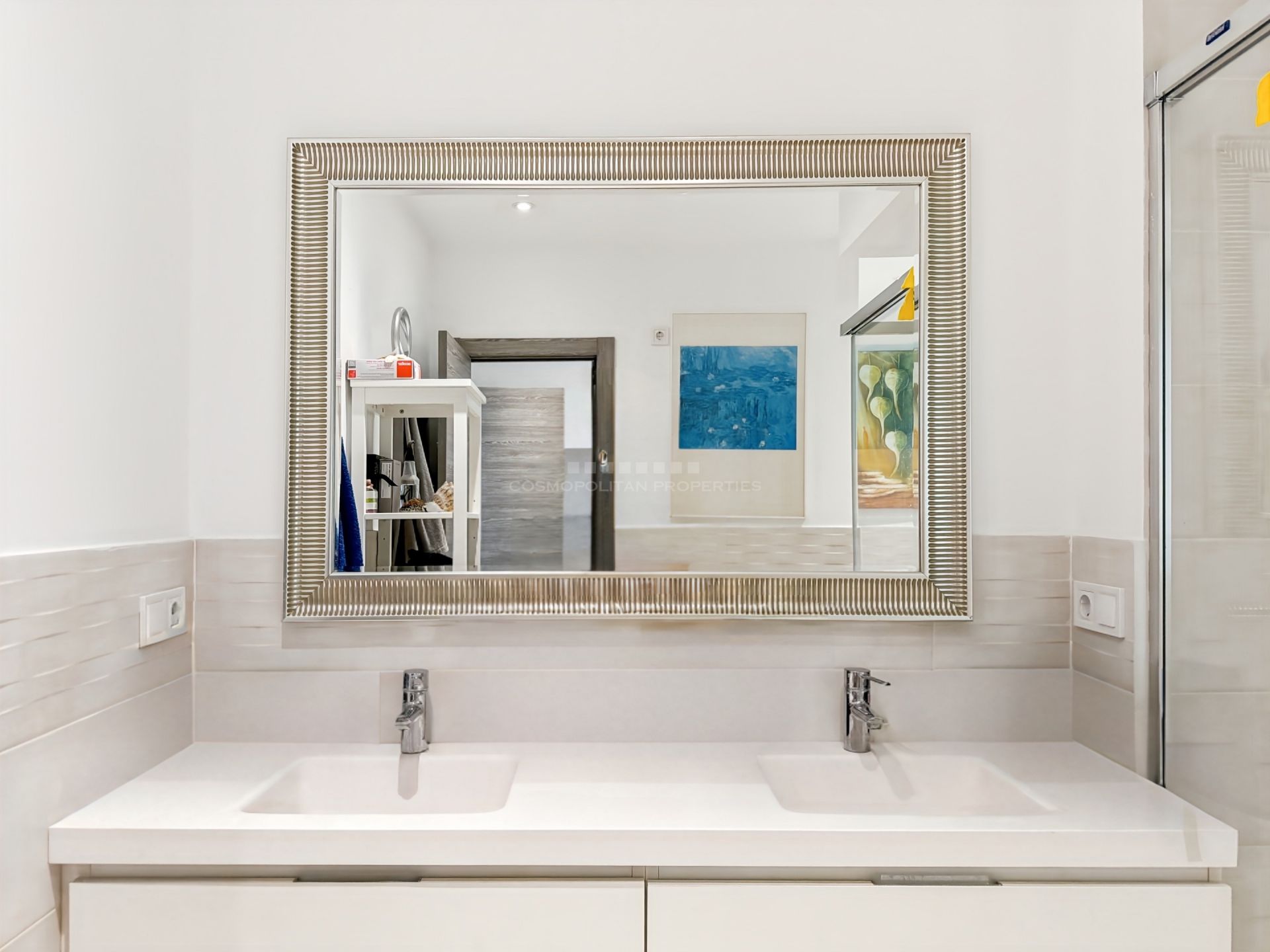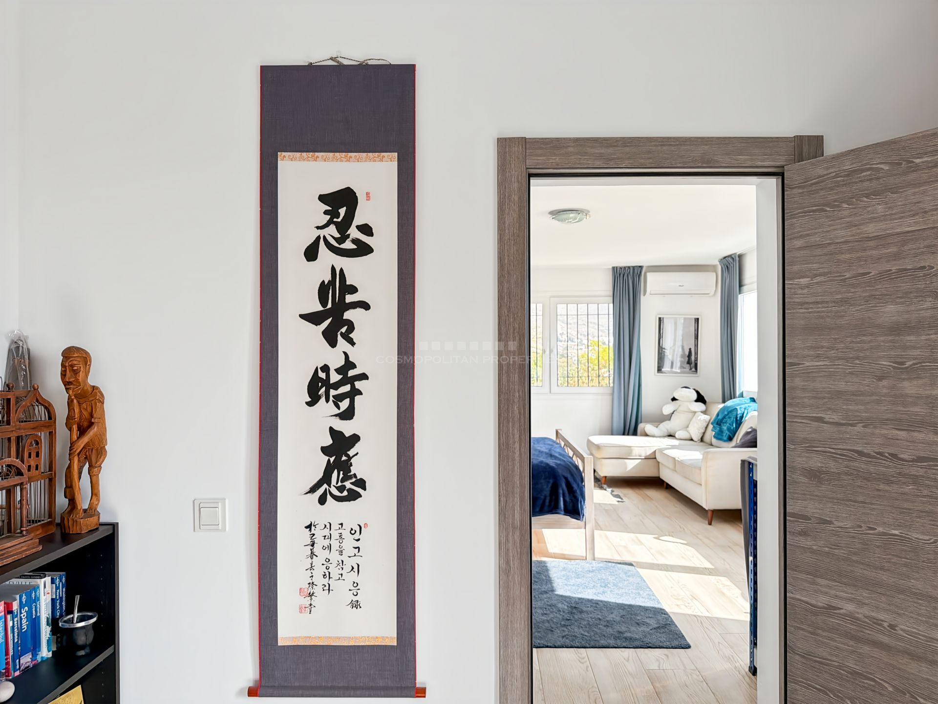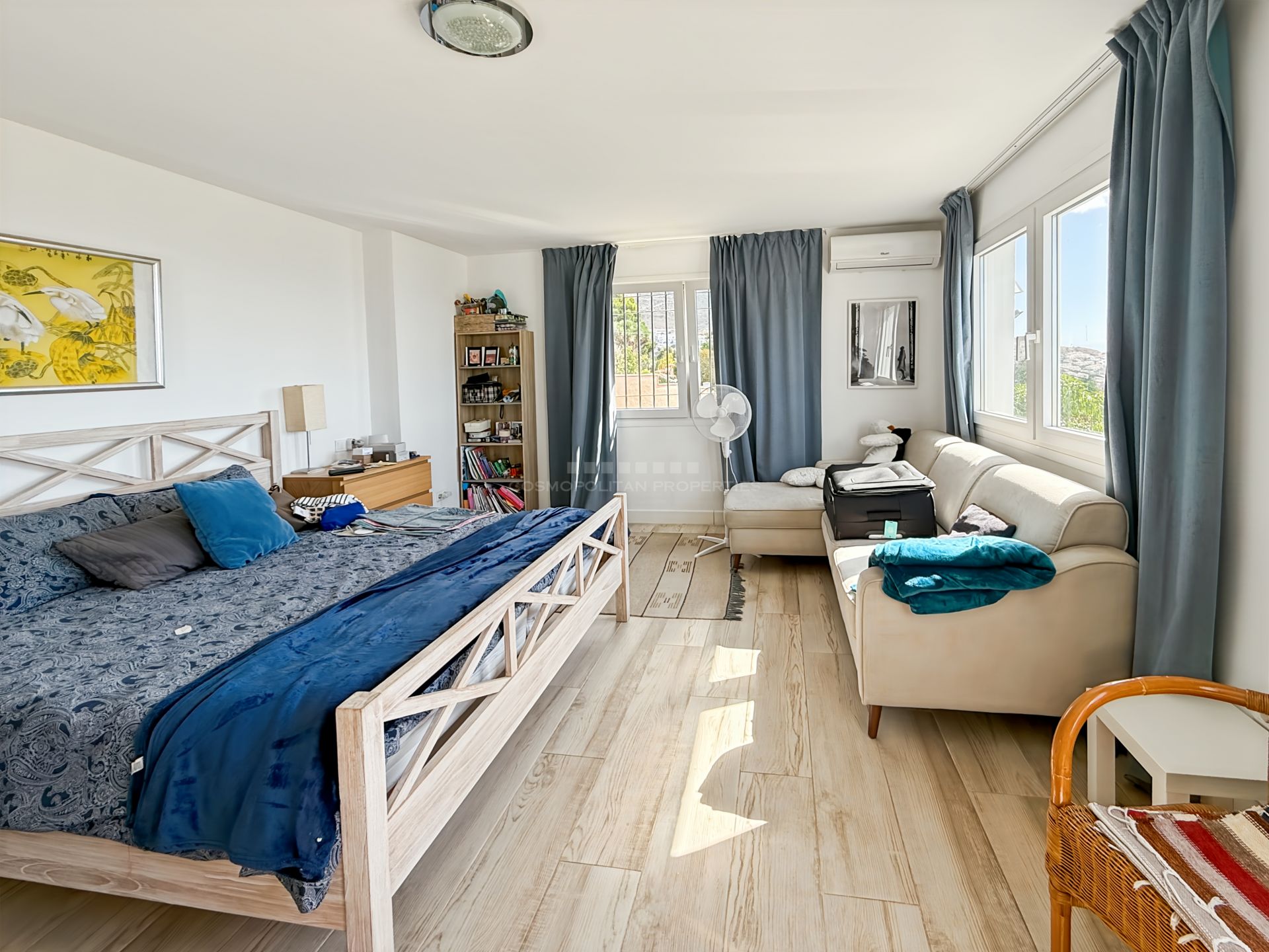 La propiedad se desarrolla en una sola planta, lo que la hace especialmente cómoda y funcional. Dispone de un amplio y luminoso salón con vistas panorámicas al mar, una cocina abierta totalmente equipada con acceso directo a una acogedora terraza con vistas al Mediterráneo.