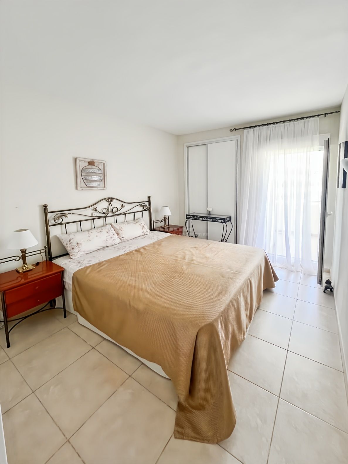 El apartamento, con orientación oeste y sol de tarde, ha sido recientemente renovado con materiales de alta calidad. Ofrece un luminoso salón con acceso a una preciosa terraza con vistas al Parque de la Paloma, los jardines y la piscina. La cocina abierta está totalmente equipada, el dormitorio doble cuenta con dos armarios empotrados y el baño completo combina diseño y confort.