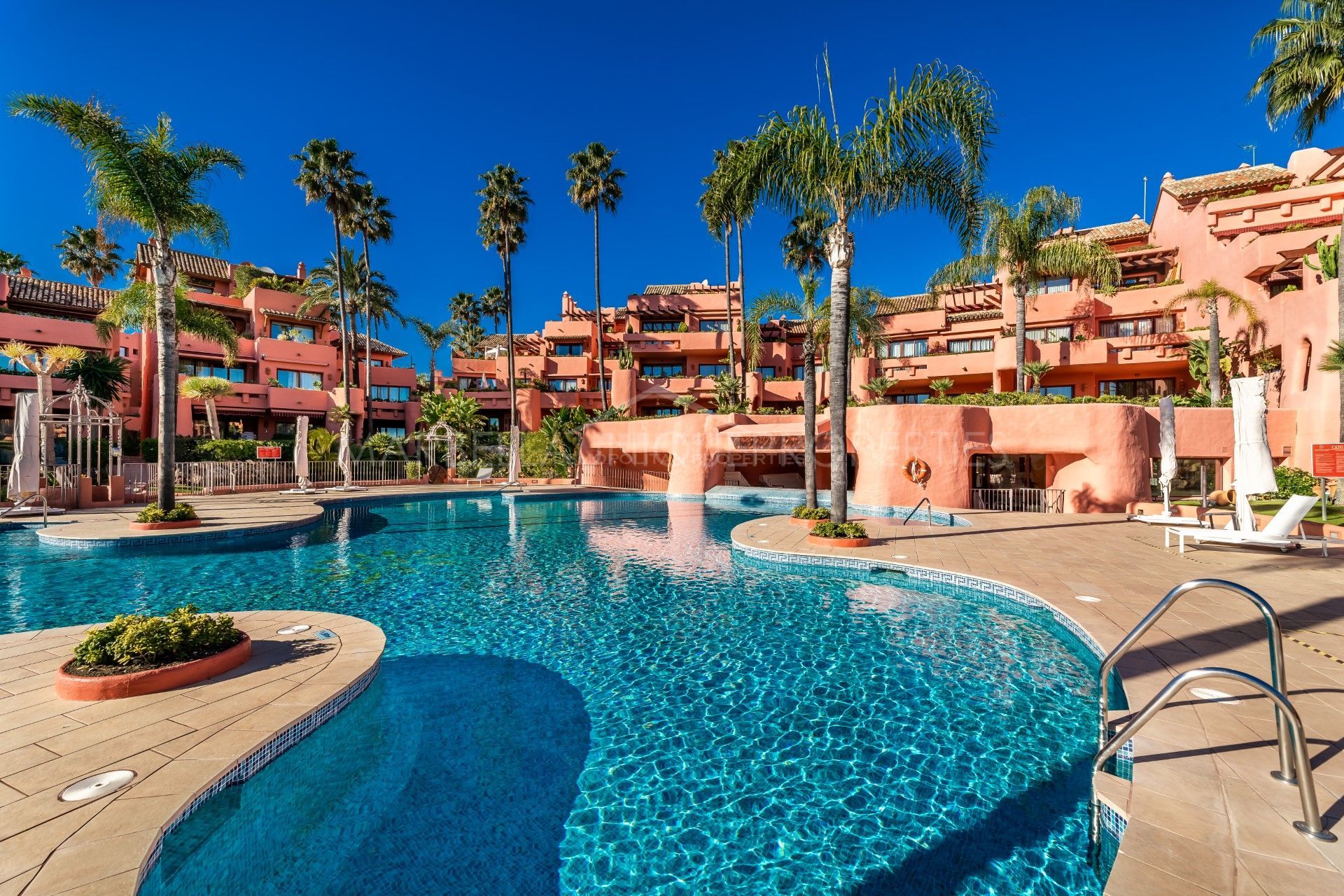 Cabo Bermejo es una urbanización privada frente al mar, famosa por sus exuberantes jardines tropicales, piscinas con cascada, gimnasio y seguridad 24 horas: un verdadero oasis entre las zonas costeras más codiciadas de Marbella y Estepona.