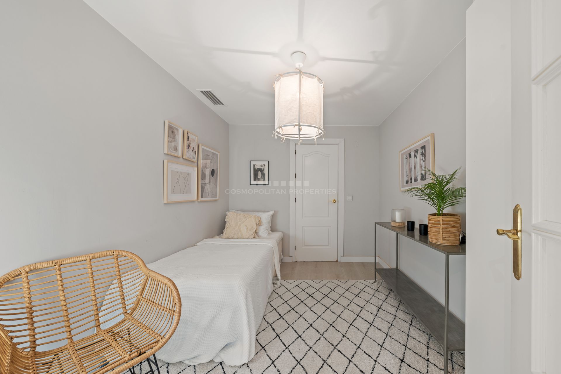 Fantástico piso totalmente reformado y amueblado situado en el corazón de Nueva Andalucía, El Dorado, a 10 minutos caminando del Centro Comercial Centro Plaza, y 5 minutos en coche de la playa, Puerto Banús o el centro de Marbella. Gran urbanización privada, con excelente ubicación, compuesta por piscina comunitaria y frondosos jardines.