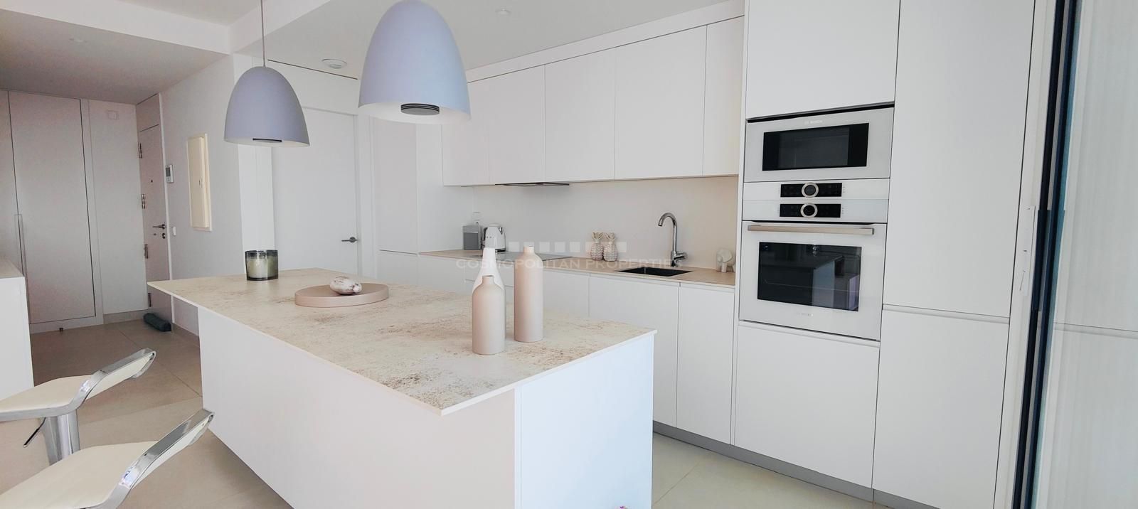 Este elegante apartamento cuenta con 2 amplias habitaciones y 2 baños, uno de ellos en suite con calefacción por suelo radiante, garantizando el máximo confort. El elemento más destacado de la propiedad es su impresionante terraza de 51 m², perfecta para disfrutar del clima mediterráneo durante todo el año.