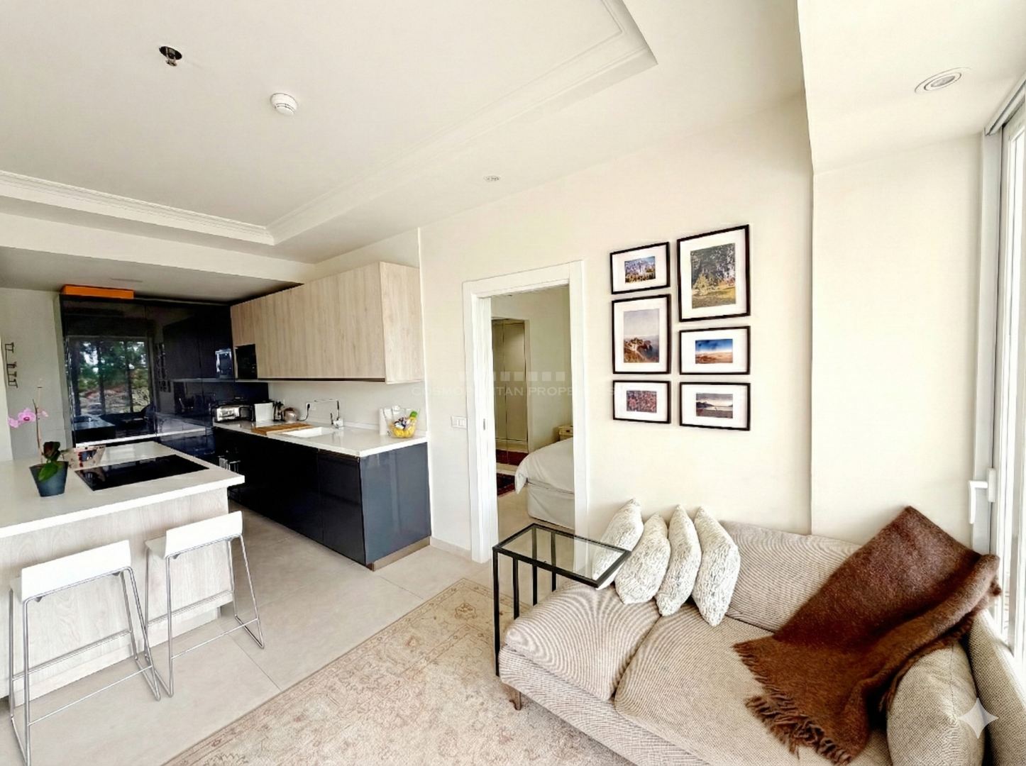 Esta propiedad, luminosa y elegante, goza de sol todo el día y hermosas vistas. Cuenta con 151 m2 distribuidos en vestíbulo, salón-comedor con acceso a una gran terraza cubierta, dos dormitorios con baño de Porcelanosa en suite, ambas con acceso a la terraza, y cocina totalmente amueblada y equipada, también de Porcelanosa.