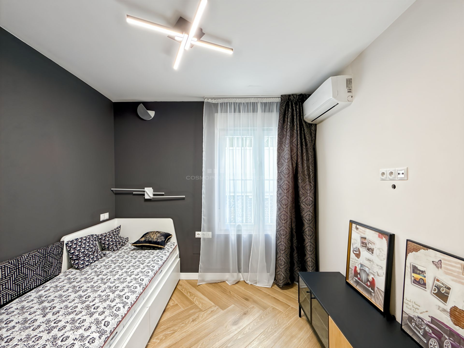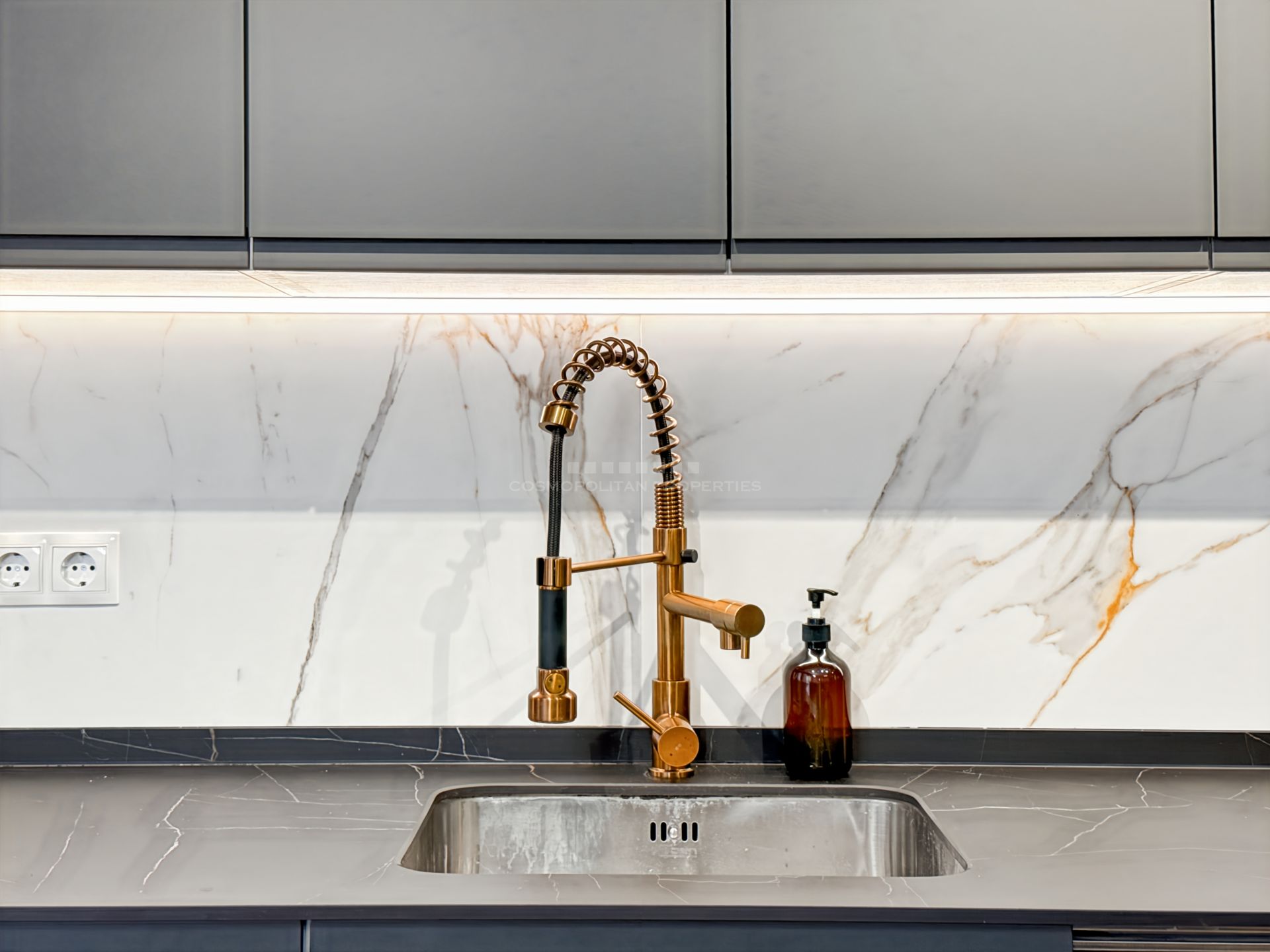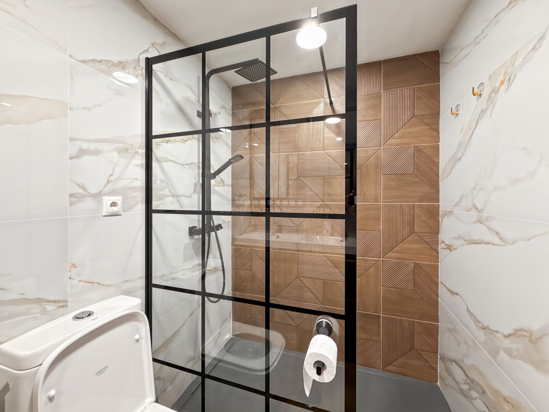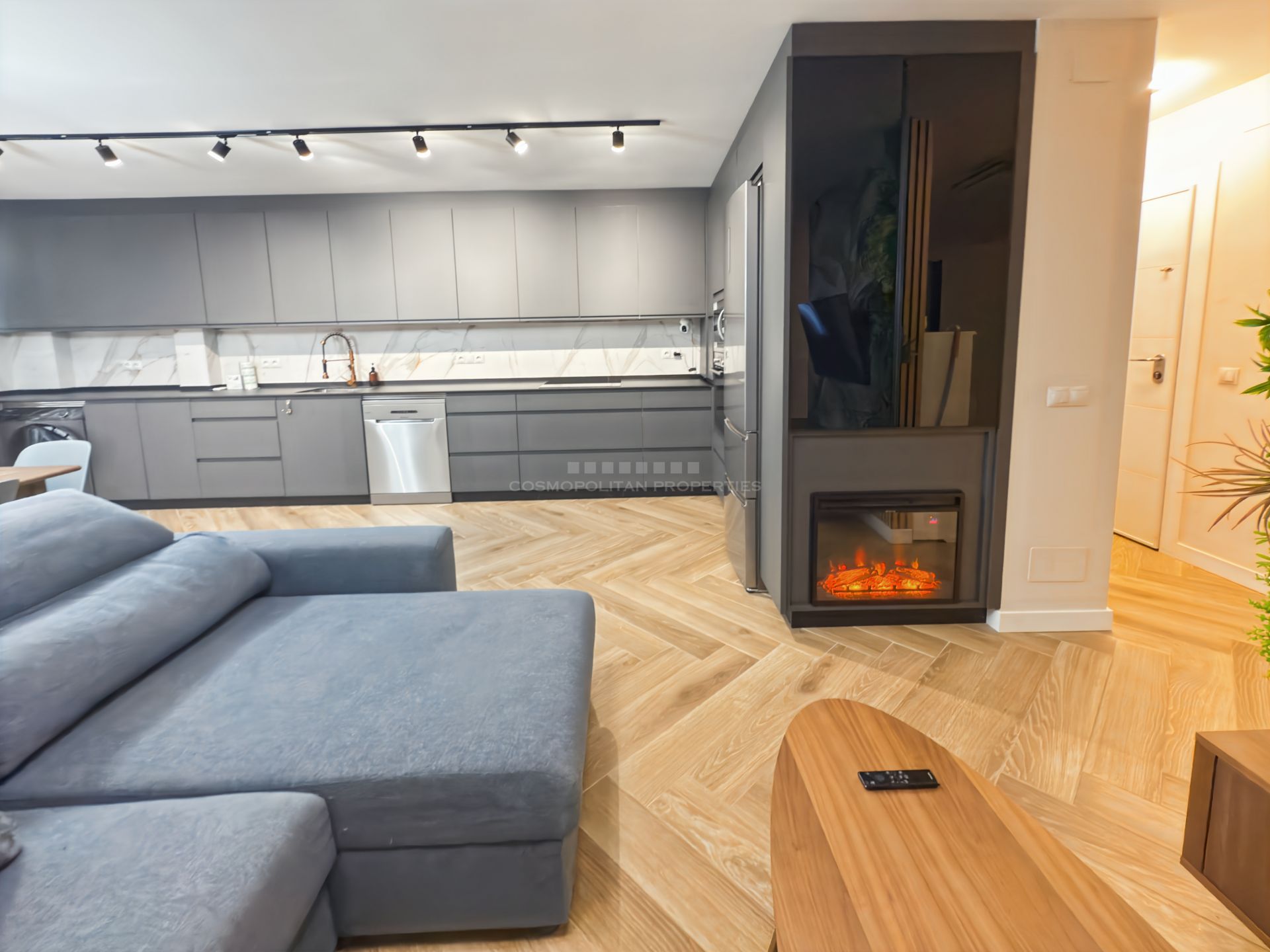 En el interior del piso, cada detalle ha sido cuidado para ofrecerte lo mejor en confort y diseño. El salón abierto, con su acogedora chimenea eléctrica, invita a disfrutar de momentos relajados en familia o con amigos. La cocina americana, completamente equipada con electrodomésticos de alta gama, se convierte en el espacio perfecto para los amantes de la cocina, con un diseño moderno y funcional que permite interactuar con los invitados mientras preparas tus mejores platos.