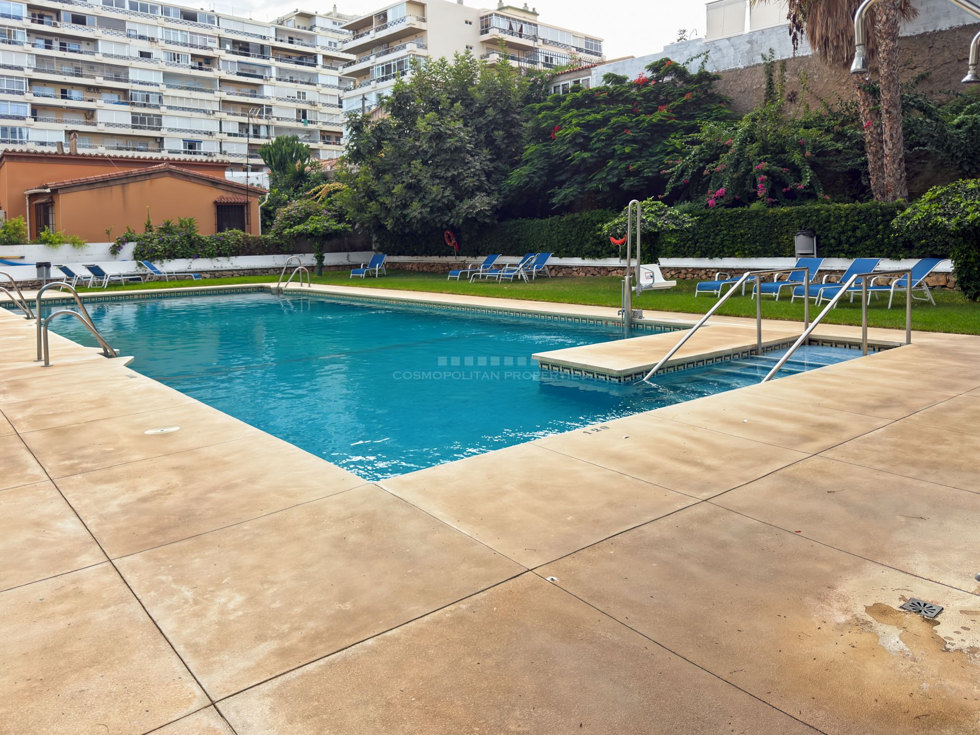 La propiedad se encuentra en un recinto cerrado, lo que garantiza seguridad y privacidad, y cuenta con hermosos jardines con árboles centenarios que aportan frescura y naturaleza al entorno. Los residentes podrán disfrutar de una gran piscina comunitaria, perfecta para relajarse durante los calurosos días de verano, y de una pista de baloncesto donde practicar deporte al aire libre. Además, estarás a solo unos metros del paseo marítimo, y en tan solo 15 minutos a pie llegarás al centro de Torremolinos y a la parada de tren, lo que te conecta cómodamente con el resto de la ciudad y sus alrededores.