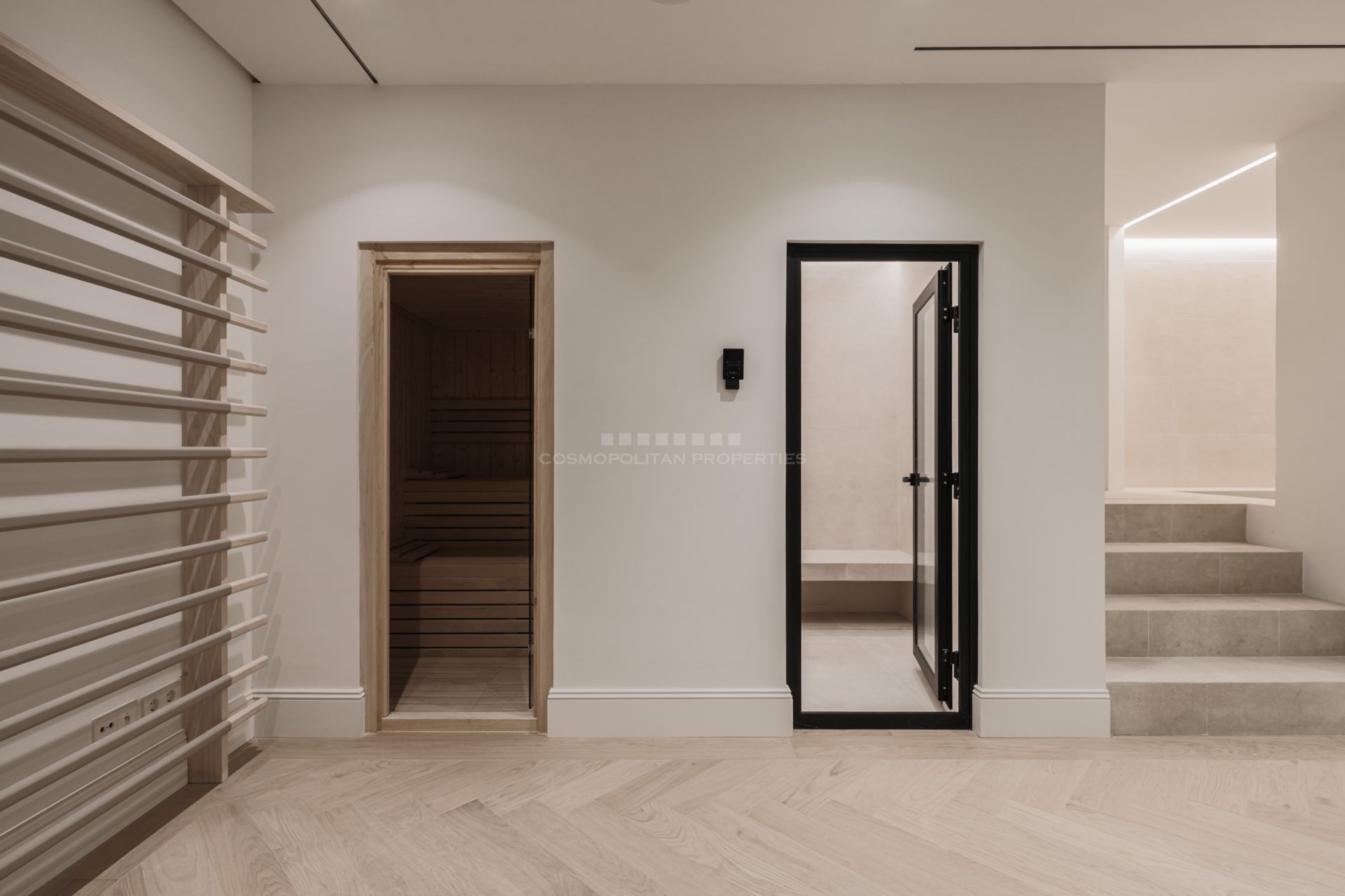 La atención al detalle define esta propiedad, con un diseño dirigido por un reconocido arquitecto que garantiza que la villa integre a la perfección elementos clásicos atemporales con comodidades contemporáneas. La villa está equipada con prestigiosas características, como un sistema de alarma de última generación, una elegante zona de barbacoa y una relajante sauna, que ofrecen una combinación perfecta de seguridad, lujo y confort.