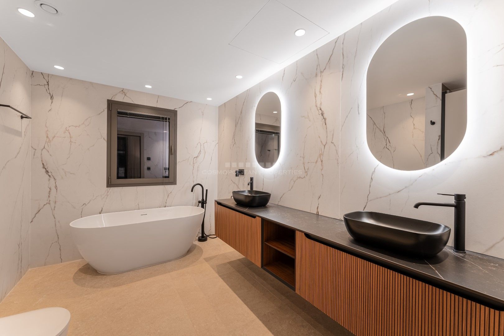 Villa Camelia es una elegante villa contemporánea de cinco dormitorios en venta en la codiciada urbanización de La Cerquilla, Nueva Andalucía. Renovada en 2025, Villa Camelia ofrece un estilo de vida moderno y lujoso, un diseño funcional y elegantes detalles interiores.