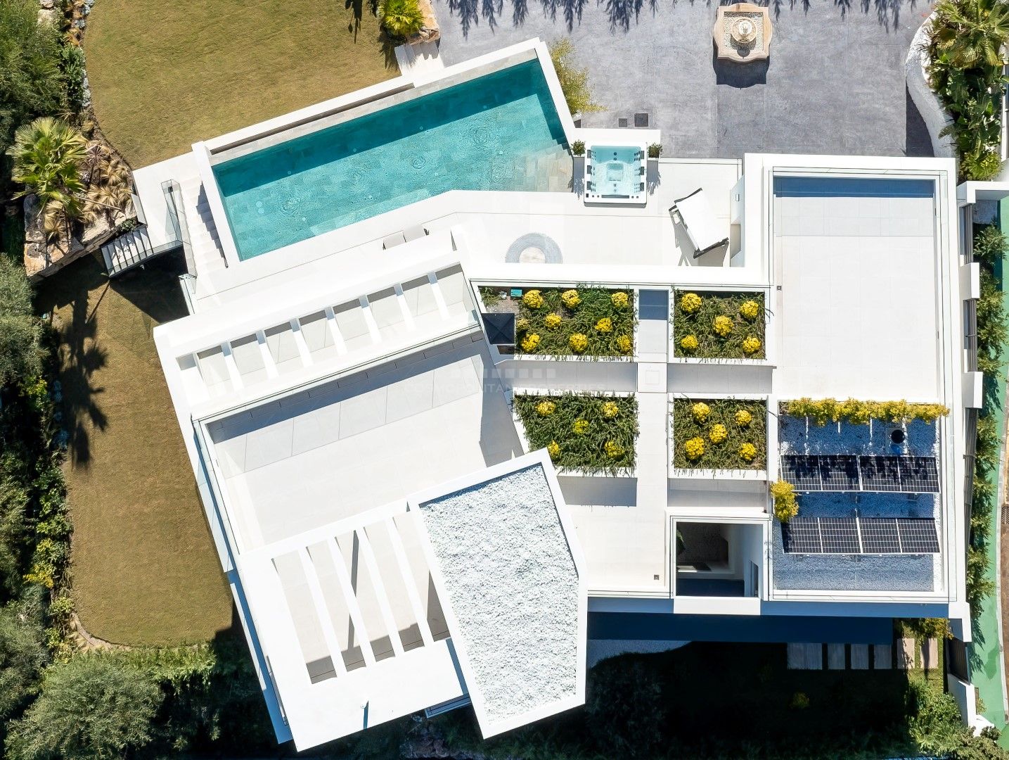 Esta moderna villa de nueva construcción se encuentra en la urbanización privada de Lomas de La Quinta. A un paso de la nueva promoción de Real de La Quinta, que ofrece numerosas instalaciones, como un campo de golf ejecutivo de 6 hoyos, un lago donde podrá disfrutar de deportes no motorizados, spa, pistas de tenis y pádel, un hotel de 5 estrellas del grupo Bayan Tree y zonas de senderismo. También encontrará el famoso Puerto Banús y sus playas a unos 8 km, Marbella a poco más de 11 km y San Pedro, con sus encantadores restaurantes y bares, a menos de 5 km. Se trata de una ubicación tranquila, pero con todo lo que busca a solo unos minutos.
