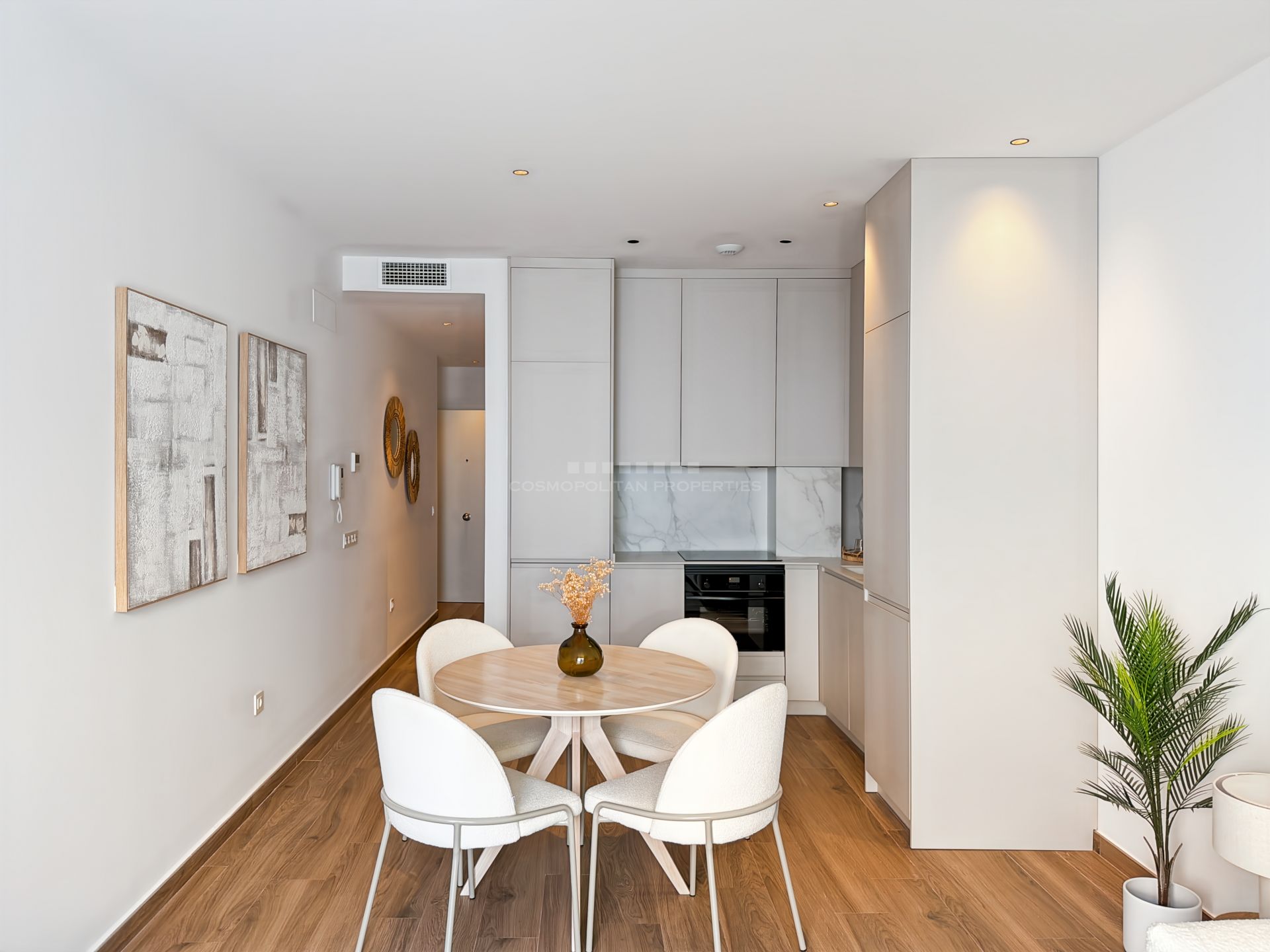 Con techos de 3 metros y una distribución fluida, cada estancia transmite amplitud y calma. El salón-comedor, orientado al norte, se inunda de luz natural y se abre a una terraza privada, perfecta para disfrutar del aire libre en cualquier momento del día. La cocina integrada combina diseño y funcionalidad, ideal para compartir momentos mientras cocinas.