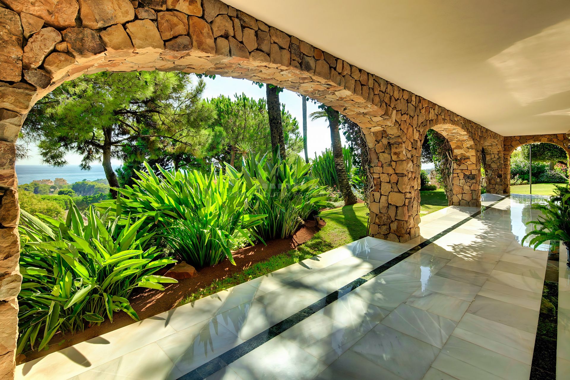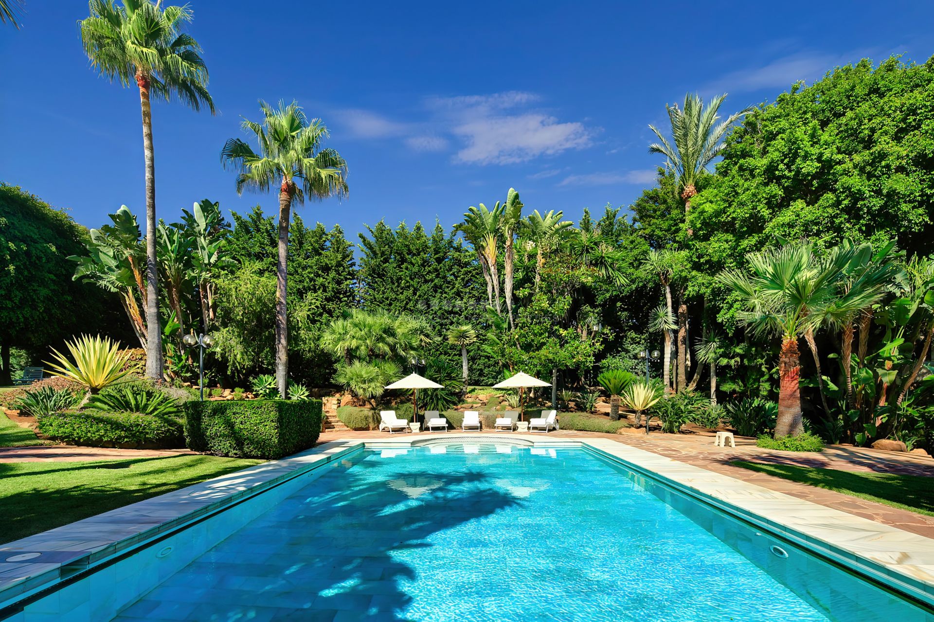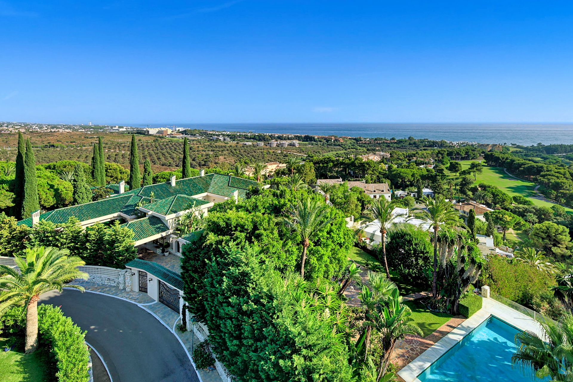 La propiedad ofrece actualmente diez dormitorios y diez baños en una distribución atemporal, complementada con múltiples salones, amplias terrazas y un pabellón ideal para el bienestar, el entretenimiento o un bar estilo retiro. La casa principal cuenta con un patio central con fuente, amplios salones y comedores, y suites con acceso directo a las terrazas y a la piscina. Una casa de invitados independiente se distribuye en dos plantas con dormitorios, salones y cocina adicionales, ofreciendo el alojamiento perfecto para familias o visitas. La finca también incluye un garaje con espacio para cuatro vehículos, jardines paisajísticos y una amplia zona de piscina diseñada para maximizar las espectaculares vistas al mar y al campo de golf.