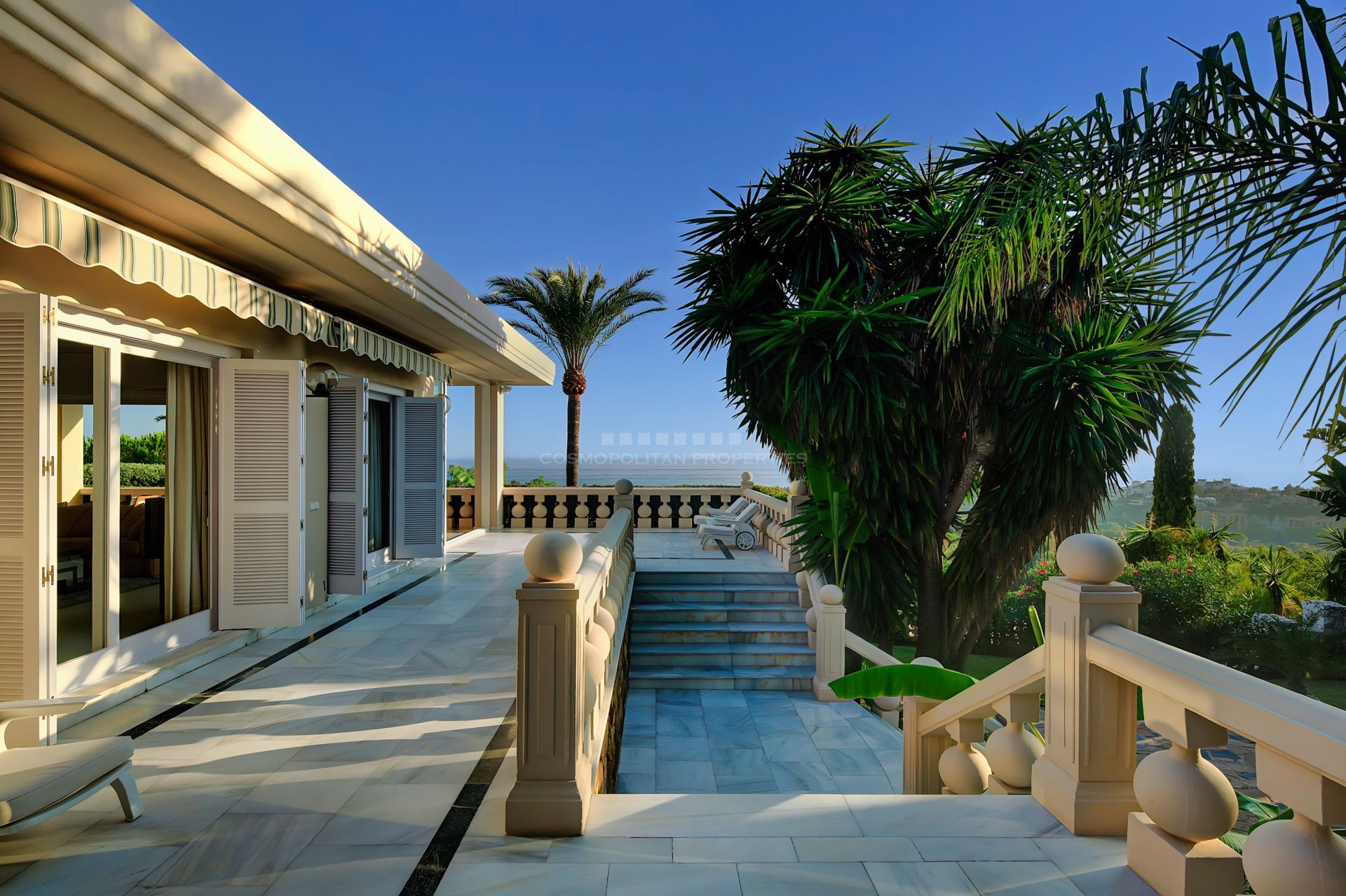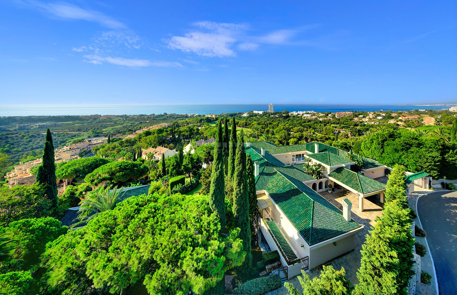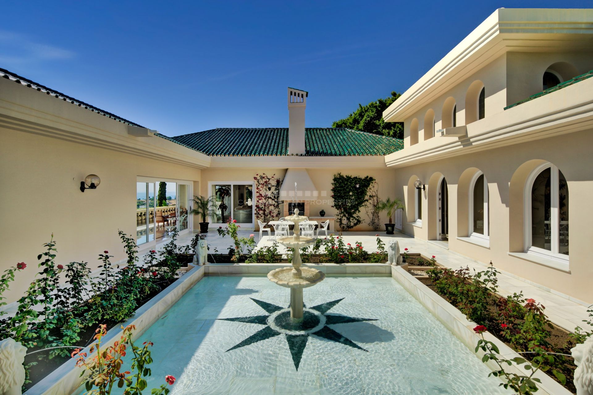 Villa Mandaluz es una extraordinaria villa independiente en Río Real, Marbella Este, que ofrece una singular combinación de elegancia andaluza clásica y un potencial ilimitado para una transformación moderna. Encaramada en una colina privada, la propiedad ofrece vistas panorámicas al mar Mediterráneo, exuberantes campos de golf y ondulantes valles verdes, creando un entorno sereno y a la vez impactante. Con una amplia parcela de 5.775 m² y 2.600 m² de superficie habitable, esta propiedad ofrece una oportunidad excepcional para compradores exigentes que buscan privacidad, lujo y flexibilidad arquitectónica.
