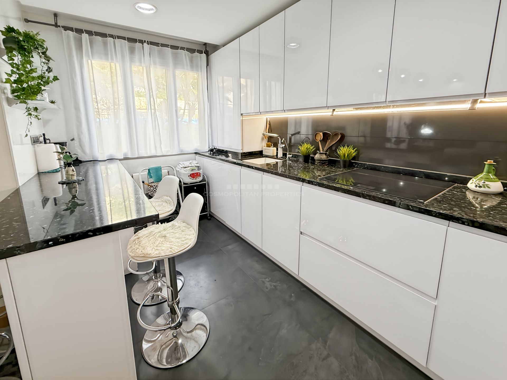 La vivienda cuenta con un cómodo recibidor que da paso a un luminoso salón con gran ventanal y cocina abierta, nueva y totalmente equipada con electrodomésticos y acabados de altísima calidad.