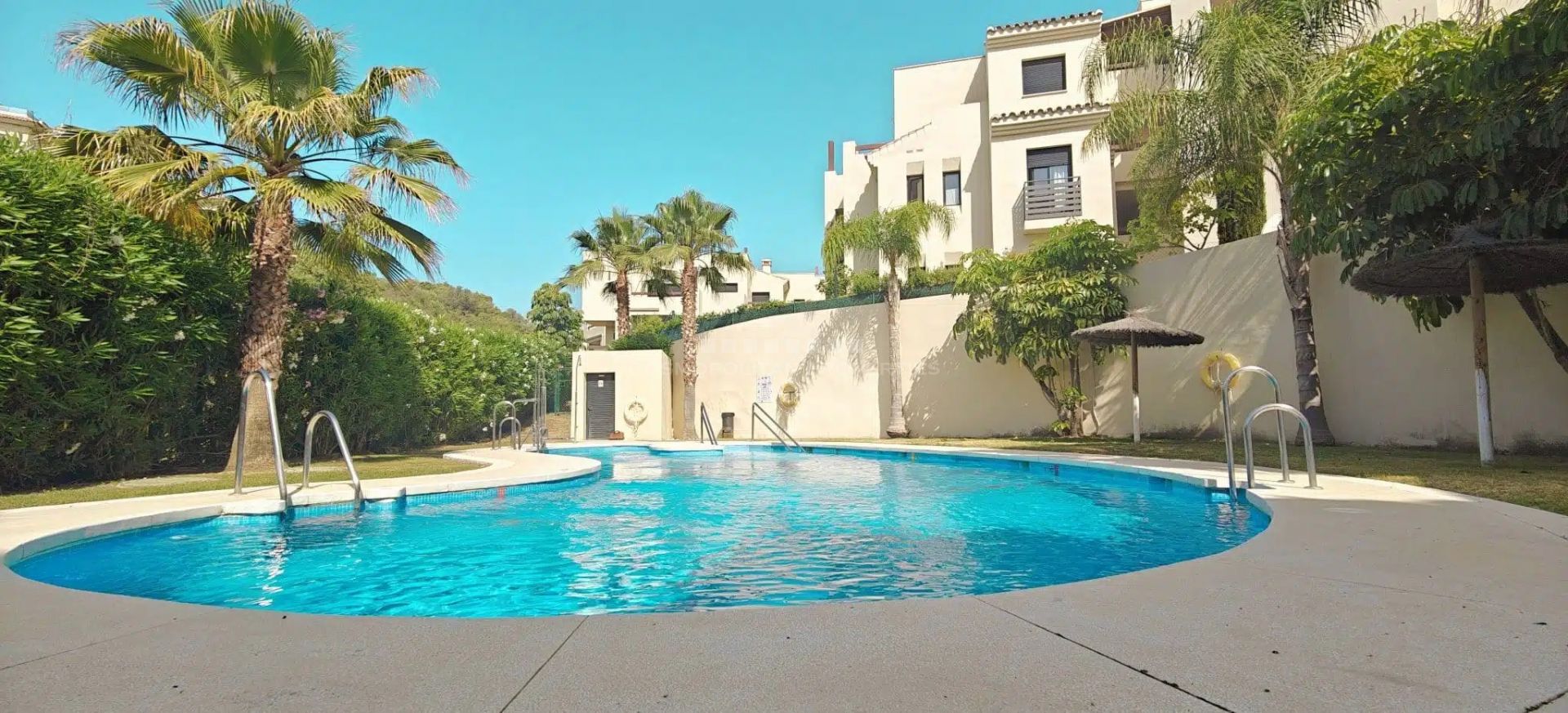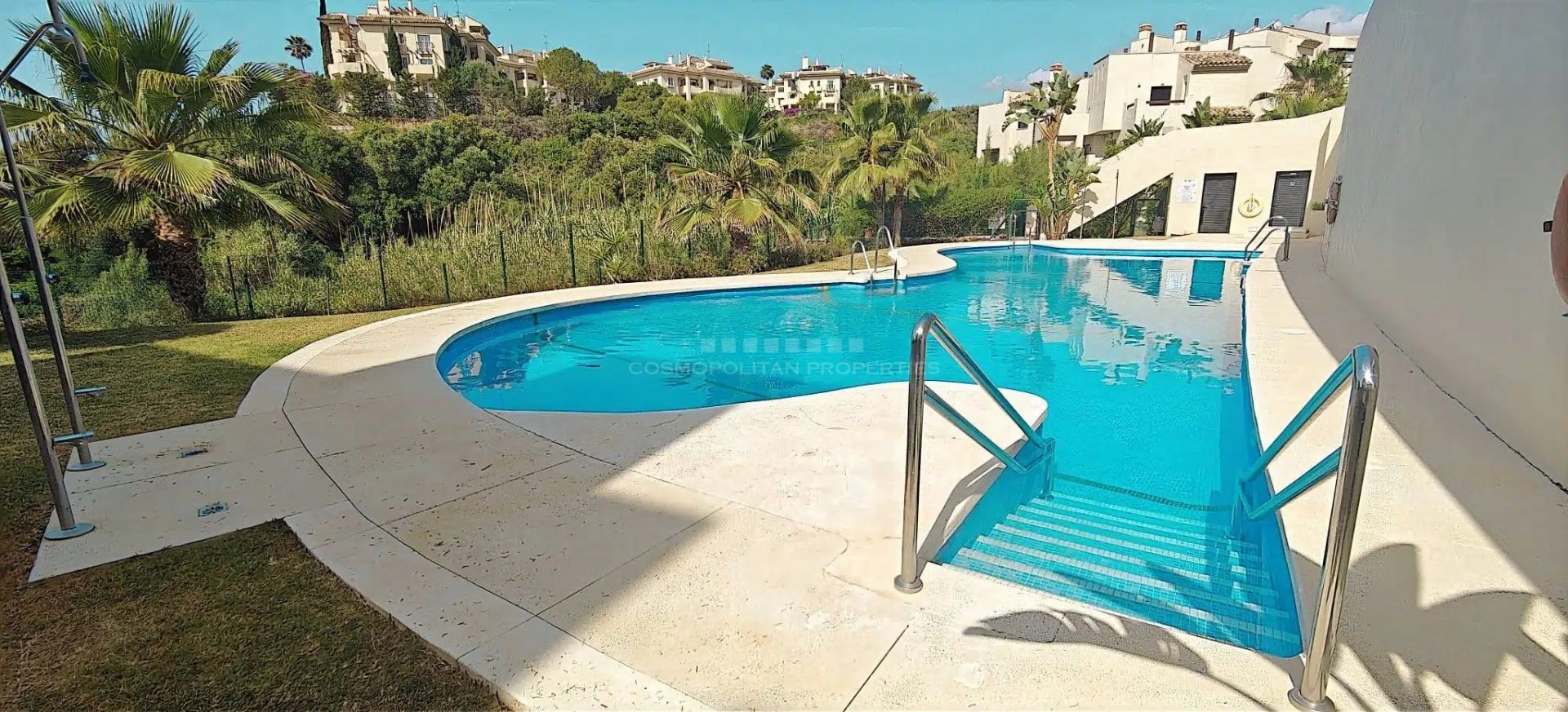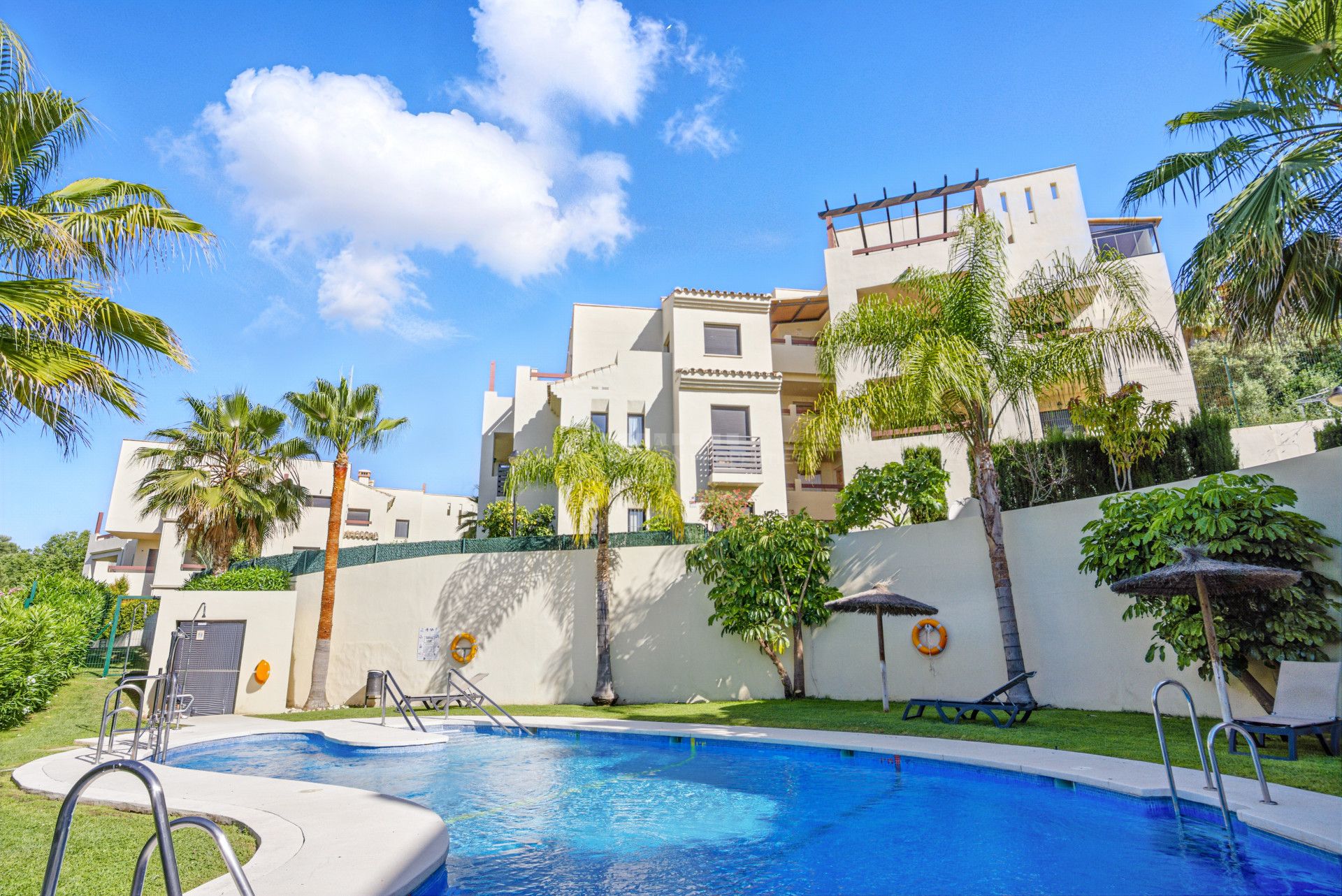 Appartement à vendre à Selwo, Estepona Est avec 3 chambres, 2 salles de bains, intégré 2013 et ont piscine (communautaire), garage (privé) et jardin (privé). Dimensions: 111m² construit, 230m² terrain et 22m² terrasse.