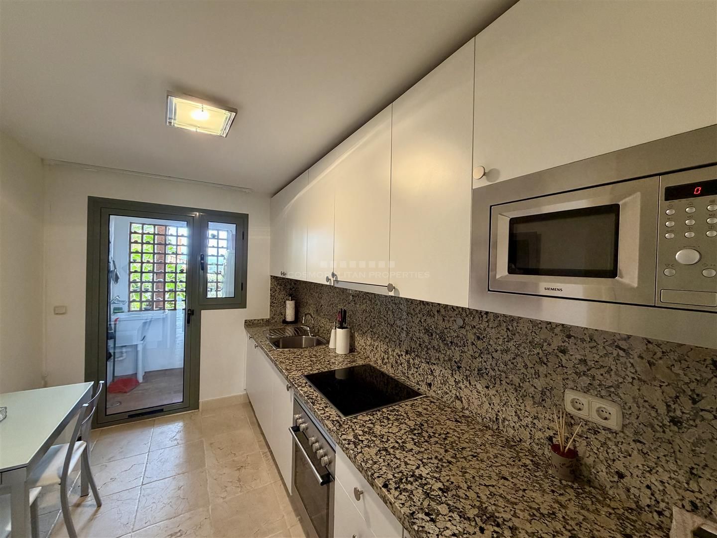 Charming apartment with a private, very bright garden located in the Benatalaya area of Estepona East. This exclusive development with 5 swimming pools and large gardens offers fantastic facilities, including a spa, a heated indoor pool, a gym, a sauna, a jacuzzi, and a tennis court just 300 meters away. 24-hour security is also available.