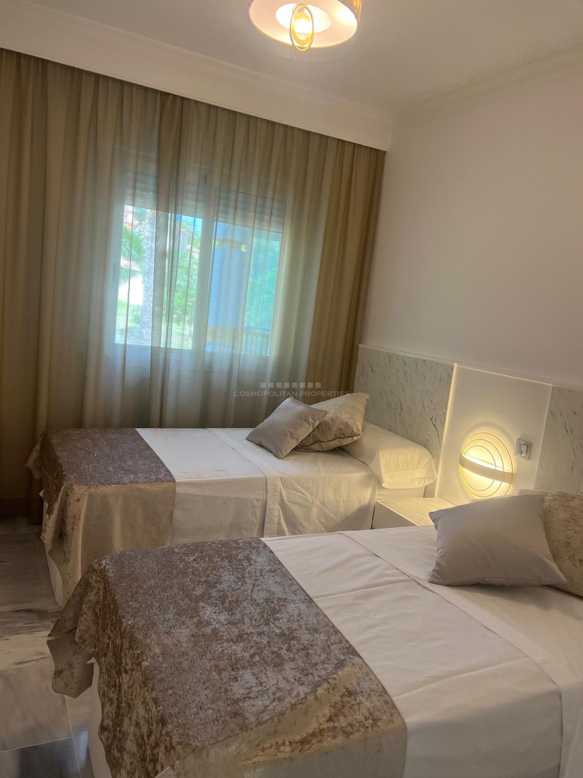 Wonderful apartment for rent just a few steps from Puerto Banús, in Dama de Noche. Fantastic private urbanization with 24-hour security, paddle tennis court, large community gardens and beautiful swimming pool. Excellent location, just a step away from the popular Puerto Banús, the beach, surrounded by services and 10 minutes by car from Marbella Centre.