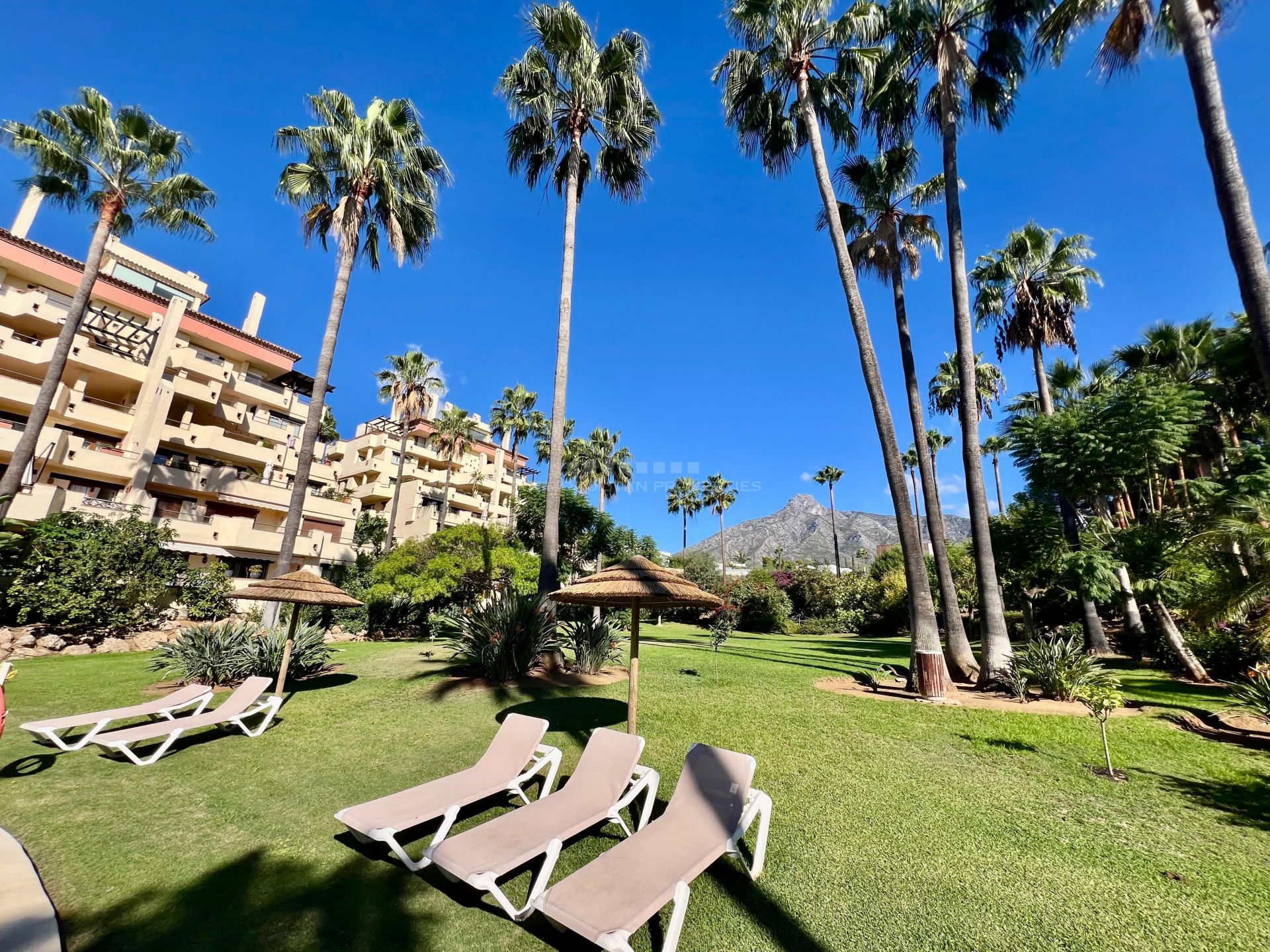 Fantastic apartment located in the prestigious La Cascada complex, right on Marbella's Golden Mile, in the Las Lomas de Marbella Club area, one of the city's most sought-after locations. This elegant development is part of a quiet and secure community, surrounded by stunning, meticulously maintained tropical gardens and just minutes from the beach, restaurants, and all amenities.